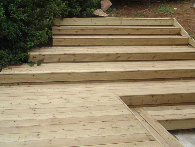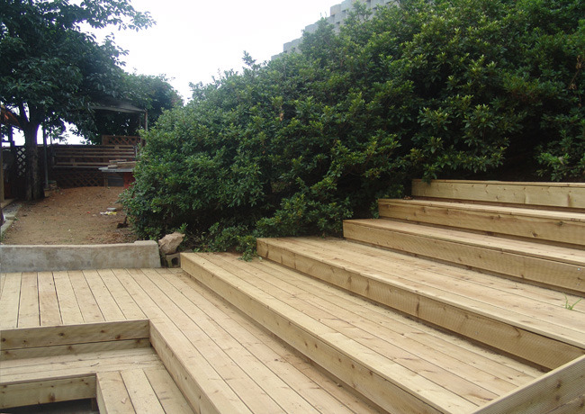 방부목으로 계단도 만들고.