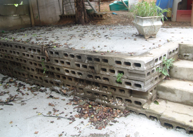 담벽도 갈라지고 쓰러지고, 바닥에 콘크리트도 타설했지만 감도 떨어지고 지저분하기 짝이없네요.