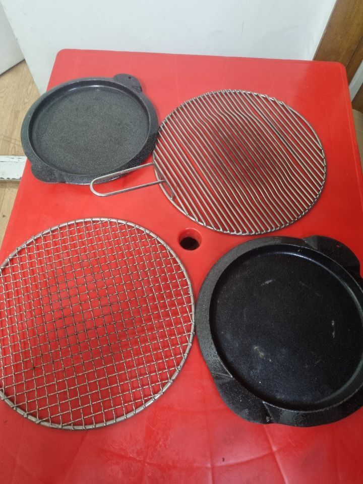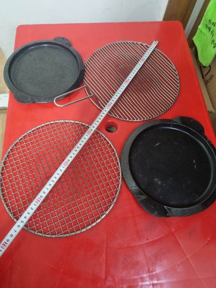판매 완료요...무쇠펜 2점 스텐 고깃석쇠2점 무쇠솥뚜껑 캠핑용품 일괄 4만원 입니다