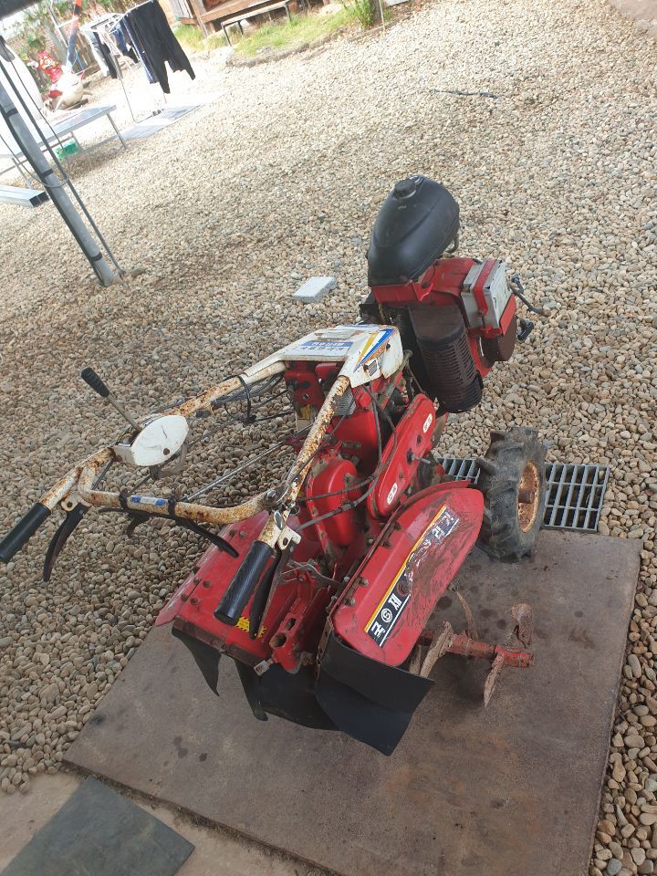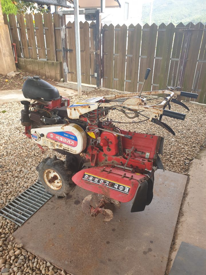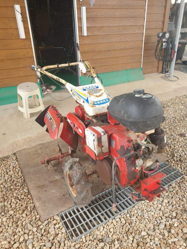 휘발류 넣으니 엔진 시동은 걸립니다. 로타리 작동도 하고요. 부속품은 없고 저게 답니다.