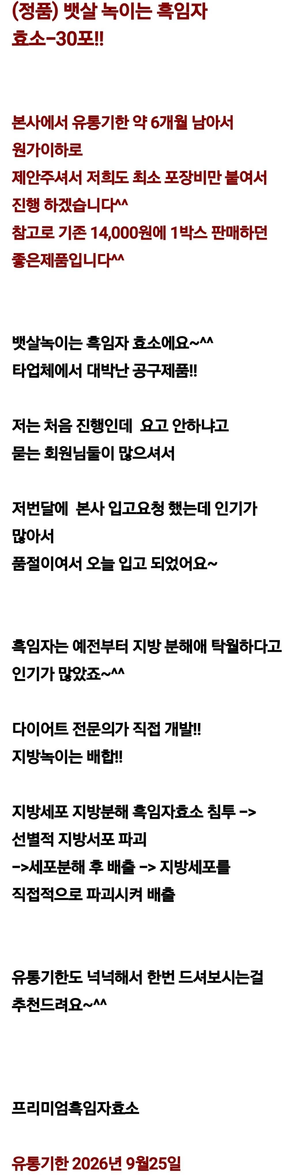 최저판매가: 1개월분 30포 8000원 배송료 3500원