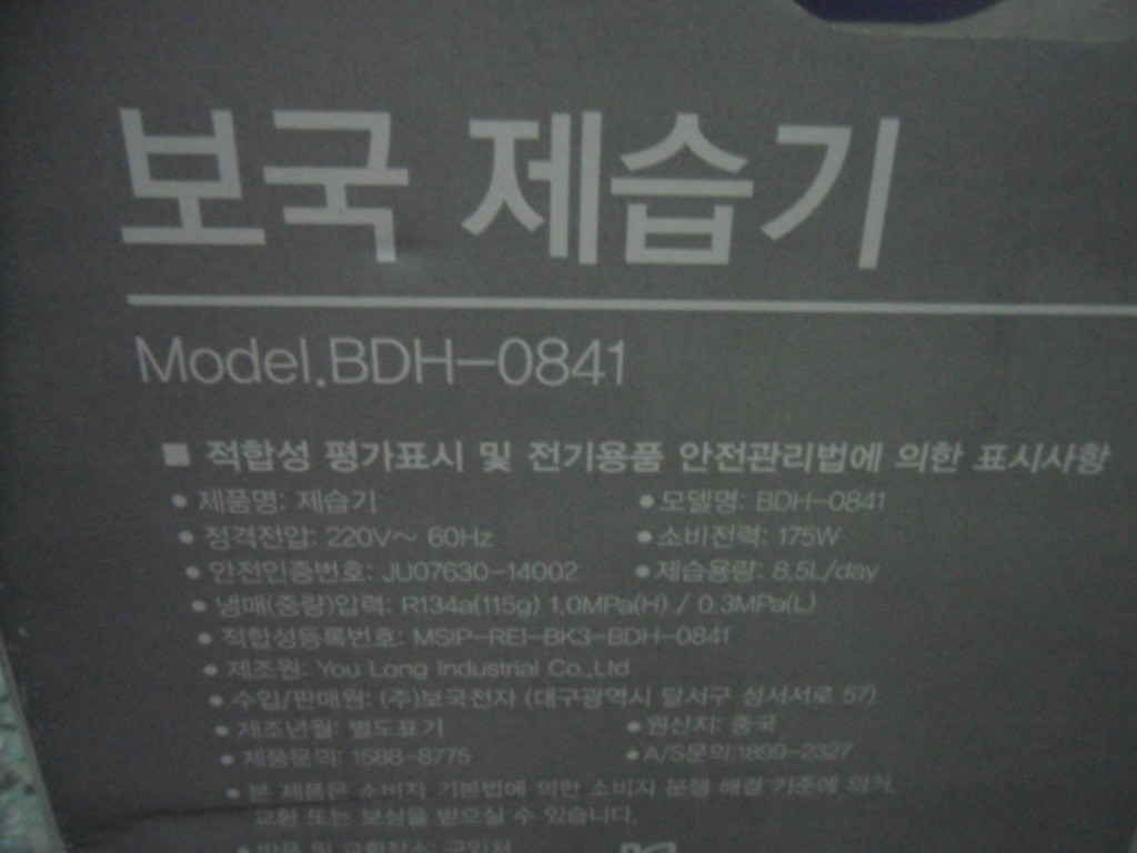 보국 제습기 박스미개봉 BDH-0841 1일제습 8.5리터 판매12만원.