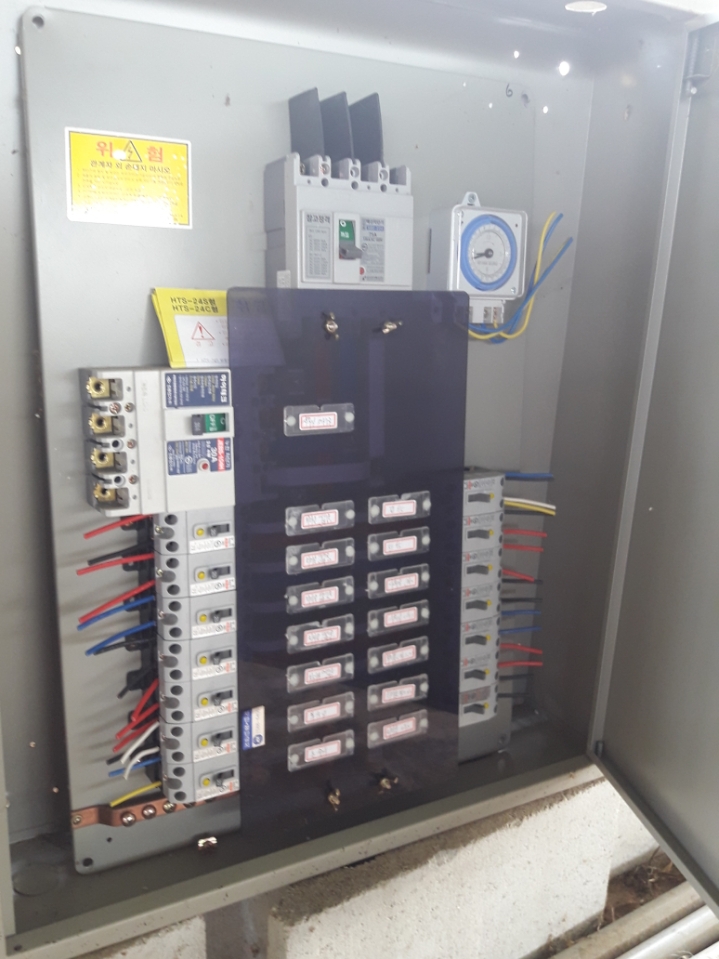 1. 전기배전판 : 메인 75A, 타이머 부착