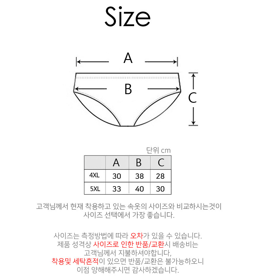 입고 계시는 속옷 사이즈와 비교하여