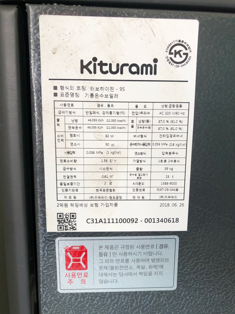 1. 판매 물품명(기타부속품): 기름보일러(귀뚜라미)