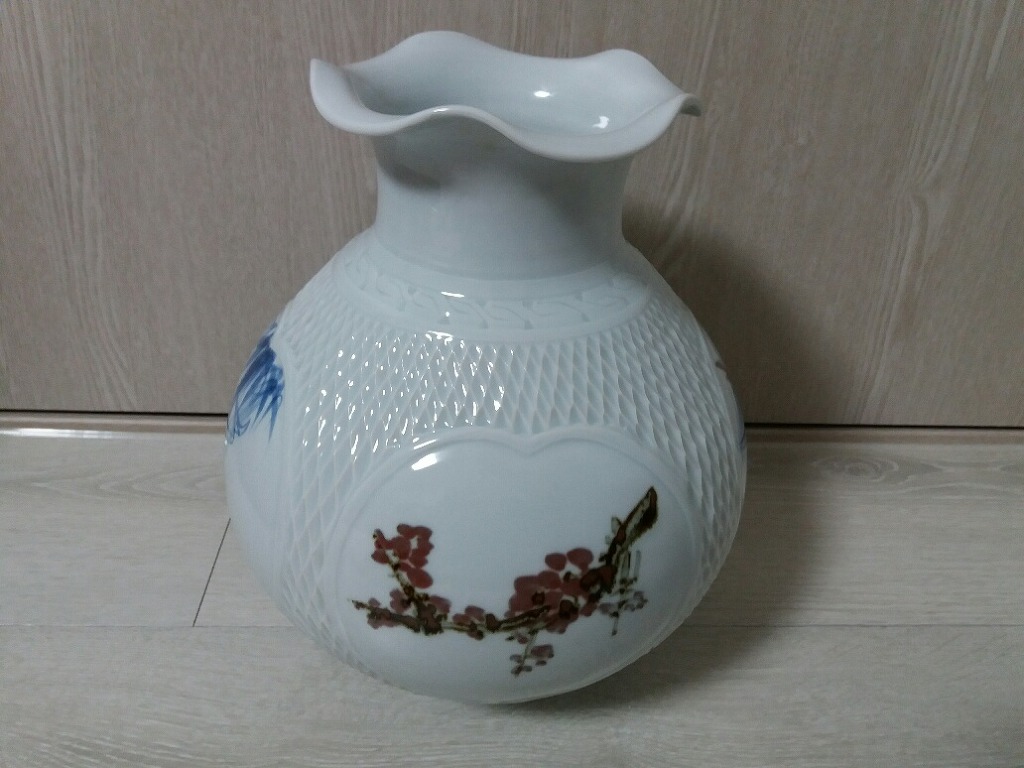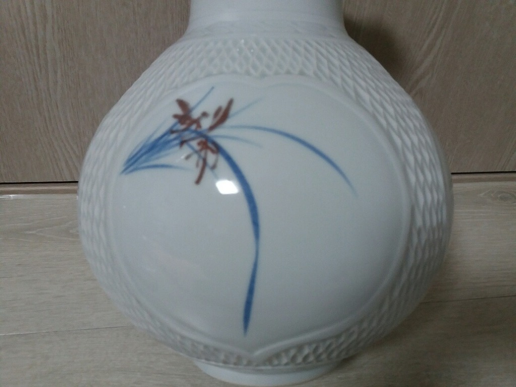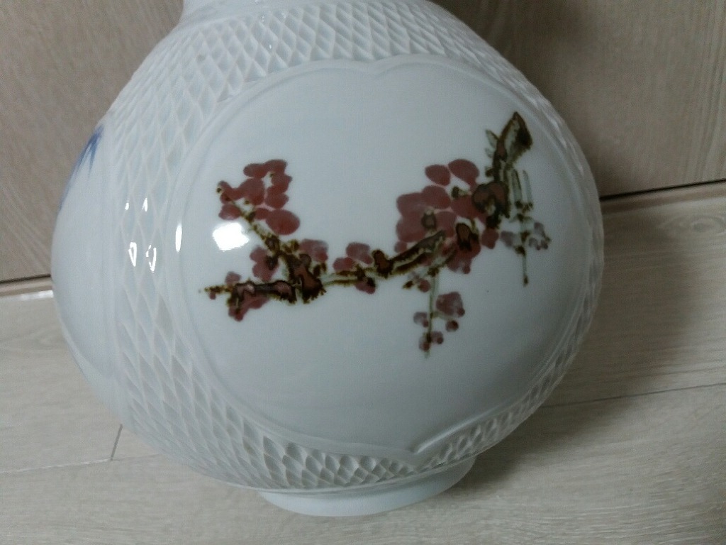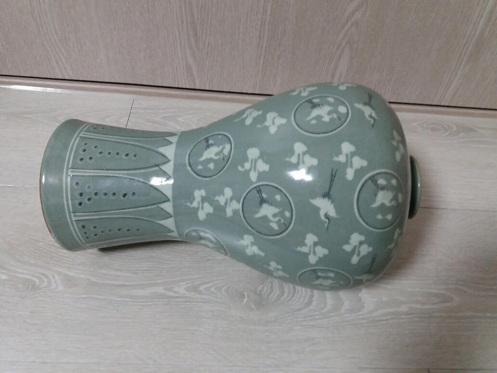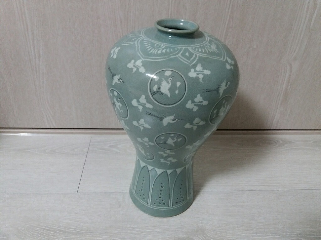 높이 32 입지름5.5 굽지름12의 선봉 김영근선생의 청화운학문 매병이며 일체 유 수리없으며 무게감 좋습니다 6만원입니다
