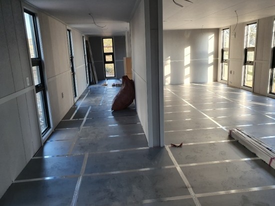 바닥은 데코타일을 깔기 전에 보일러를 넣었어요