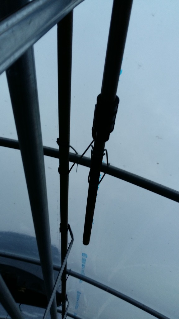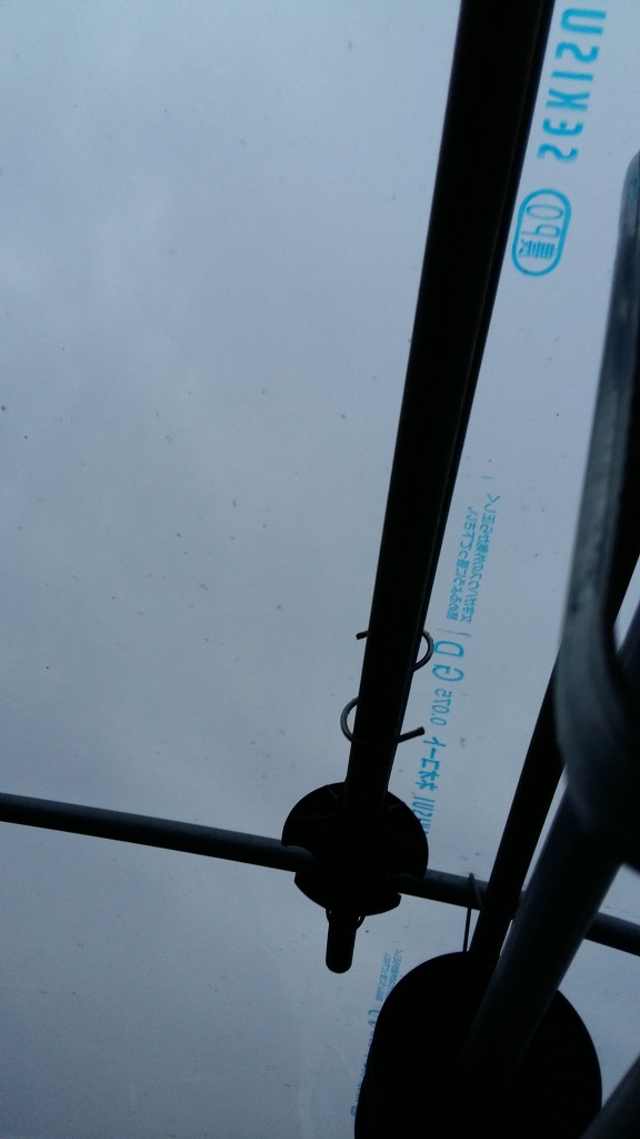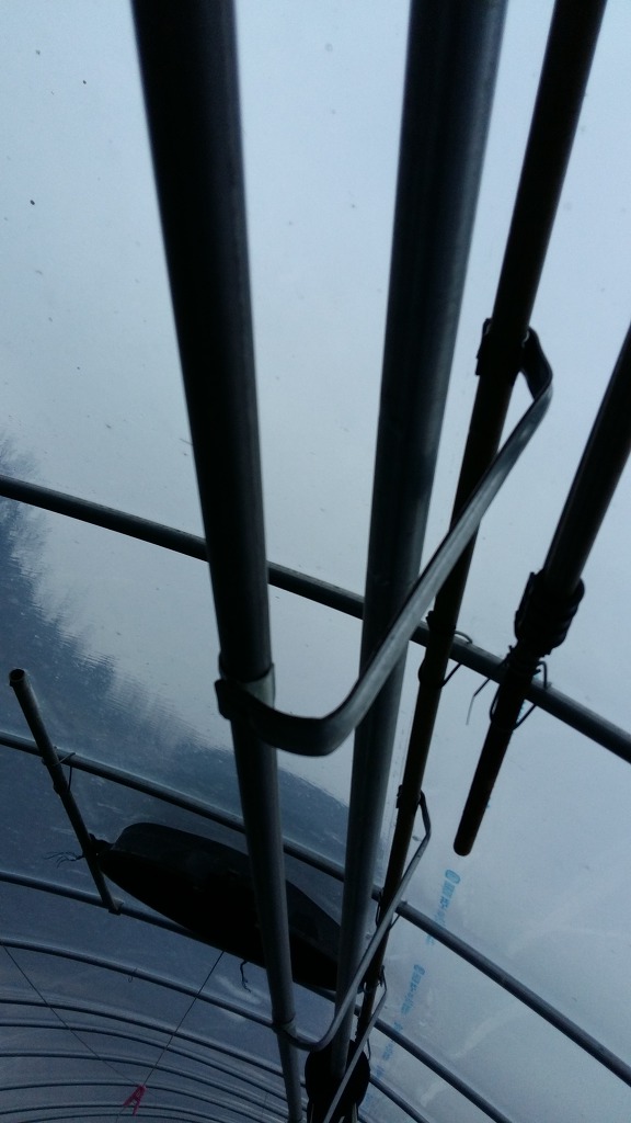 눈온다는 일기예보나면 바로 내리기 위해 S 걸이에 걸어 둔다.....아래부분.PVC 받침에 파이프 굵기에 따라 끼우도록 되었는데 이것 쓰다간 큰일난다.... 얼굴을 다친다.... 절대 사용치 말것.