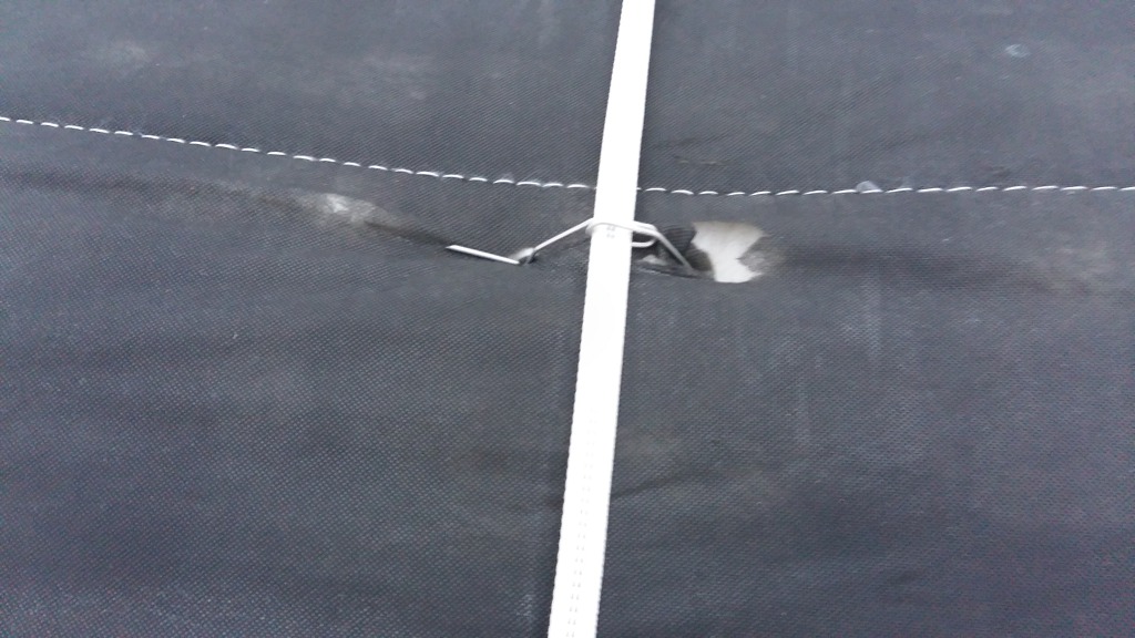 천정비닐 구멍을 잘뚫어야 눈비가 새지 않는다