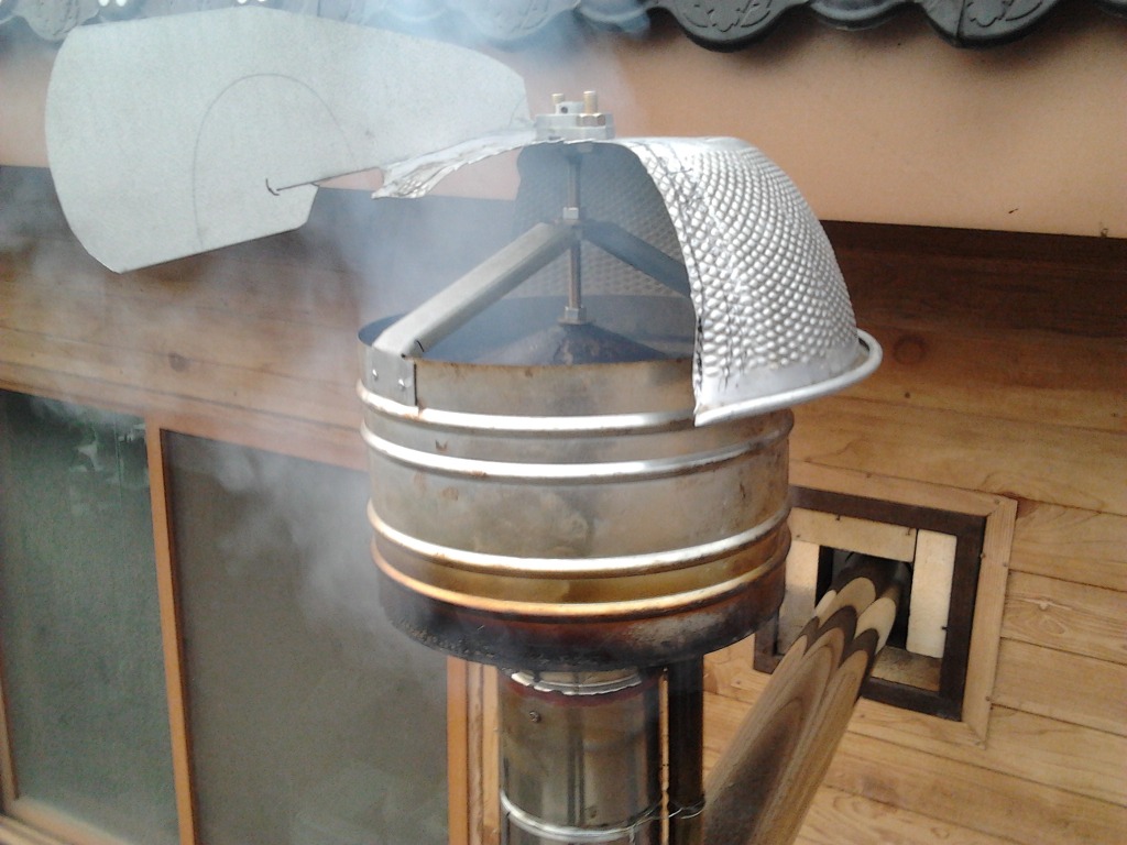 불편해서 시중의 역풍 방지기를 구해서 연통 끝에 달았지만