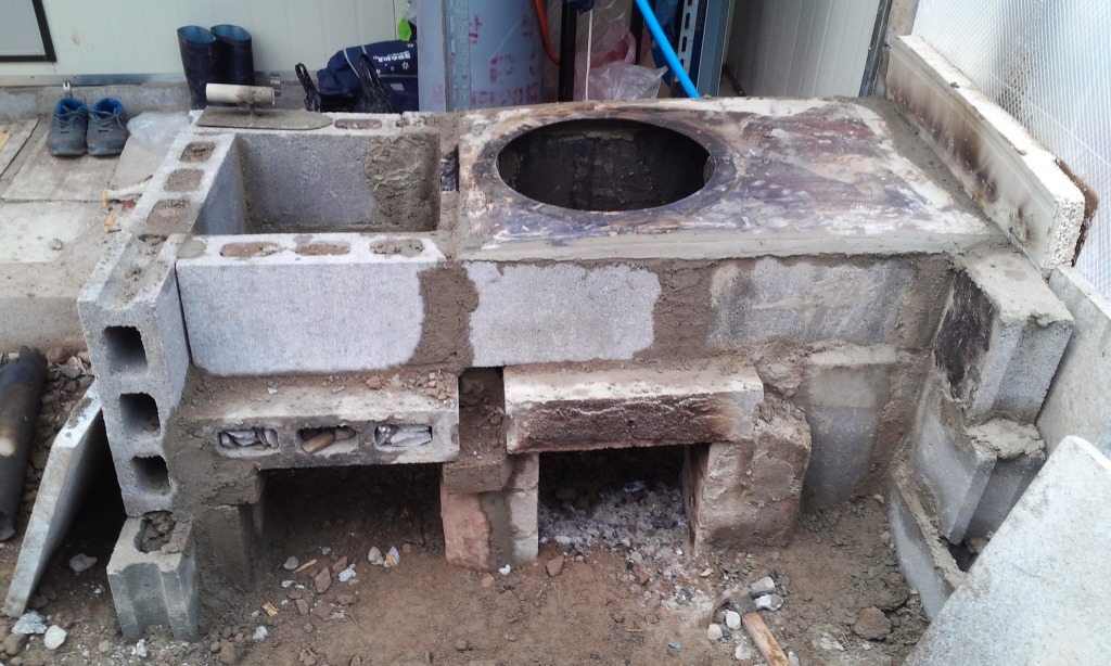 그리고 왼쪽에 온수통으로 사용하려고 하던 것은 용도를 변경하여 연탄 화덕으로 만들어야 될 것 같습니다.