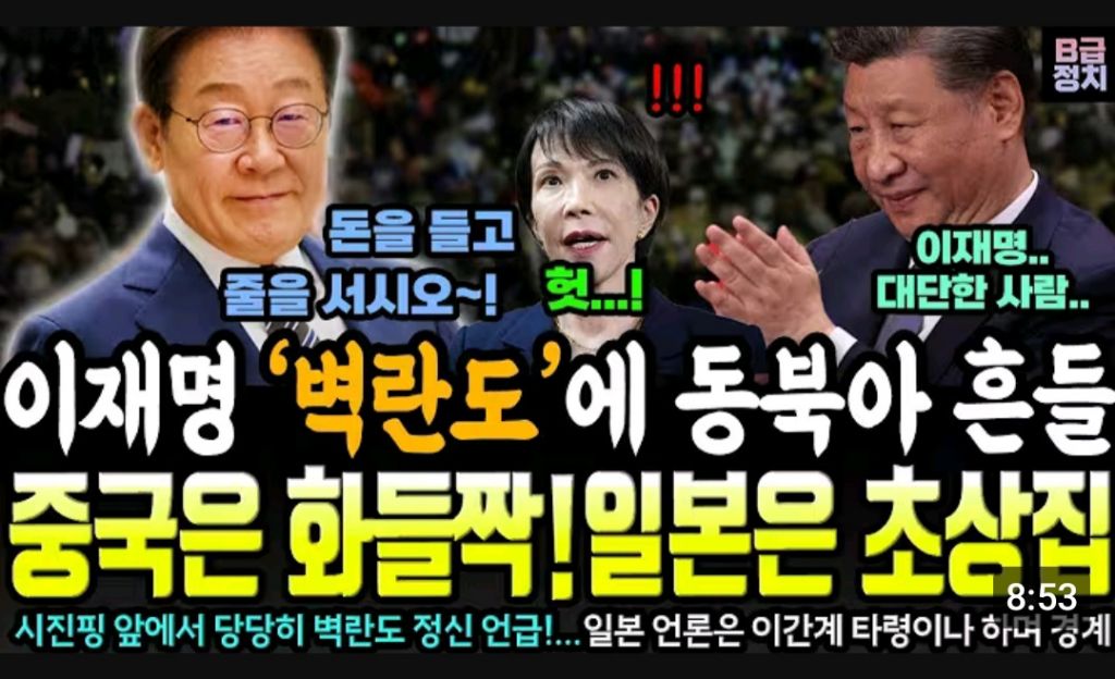 시진핑앞에서. 벽란도정신을 외친 이재명 작성자달래랑머루|작성시간26.01.06|조회수106 목록 댓글 4 글자크기 작게가 글자크기 크게가 https://youtube.com/shorts/x-EA4aAdpjw?si=FlRwBbcCk2ABlp8R강대국앞에. 굴종아닌 외교 다음검색 현재 게시글 추가 기능 열기 북마크 공유하기 신고 센터로 신고 댓글 댓글 4 댓글쓰기 답글쓰기 댓글 리스트 작성자달래랑머루 작성자 본인 여부 작성자 | 작성시간 26.01.06 미국의 천적 중국을순방하며 외교두강대국의 . 칼끝을 피해 실리외교를이게조선의 저력 작성자방가 방강 | 작성시간 26.01.06 좋은 대통령 뽑아서 행복해요 작성자천리-향 | 작성시간 26.01.06 작성자1달구지 | 작성시간 26.01.06 이재명대통령이 돼서 우리나라 좋은 나라 만들어 가요 댓글 전체보기