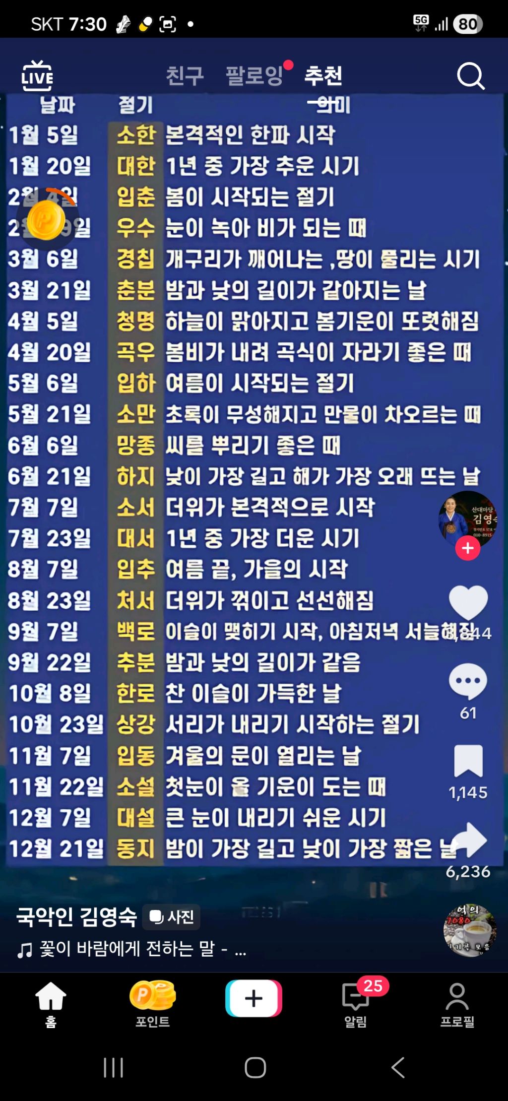 심심할때 보세요 ~~~ 작성자왕호두|작성시간26.01.06|조회수249 목록 댓글 6 글자크기 작게가 글자크기 크게가 24절기= 다음검색 현재 게시글 추가 기능 열기 북마크 공유하기 신고 센터로 신고 댓글 댓글 6 댓글쓰기 답글쓰기 댓글 리스트 답댓글 작성자왕호두 작성자 본인 여부 작성자 | 작성시간 26.01.07 좋은일만 가득하시길 바랍니다 작성자다람쥐 | 작성시간 26.01.07 유익한 정보입니다 답댓글 작성자왕호두 작성자 본인 여부 작성자 | 작성시간 26.01.07 기분좋은 수요일 되세요 작성자전은식 착한농부 | 작성시간 26.01.08 유익한정보감사합니다 답댓글 작성자왕호두 작성자 본인 여부 작성자 | 작성시간 26.01.08 기분좋은 목요일 되세요 댓글 전체보기
