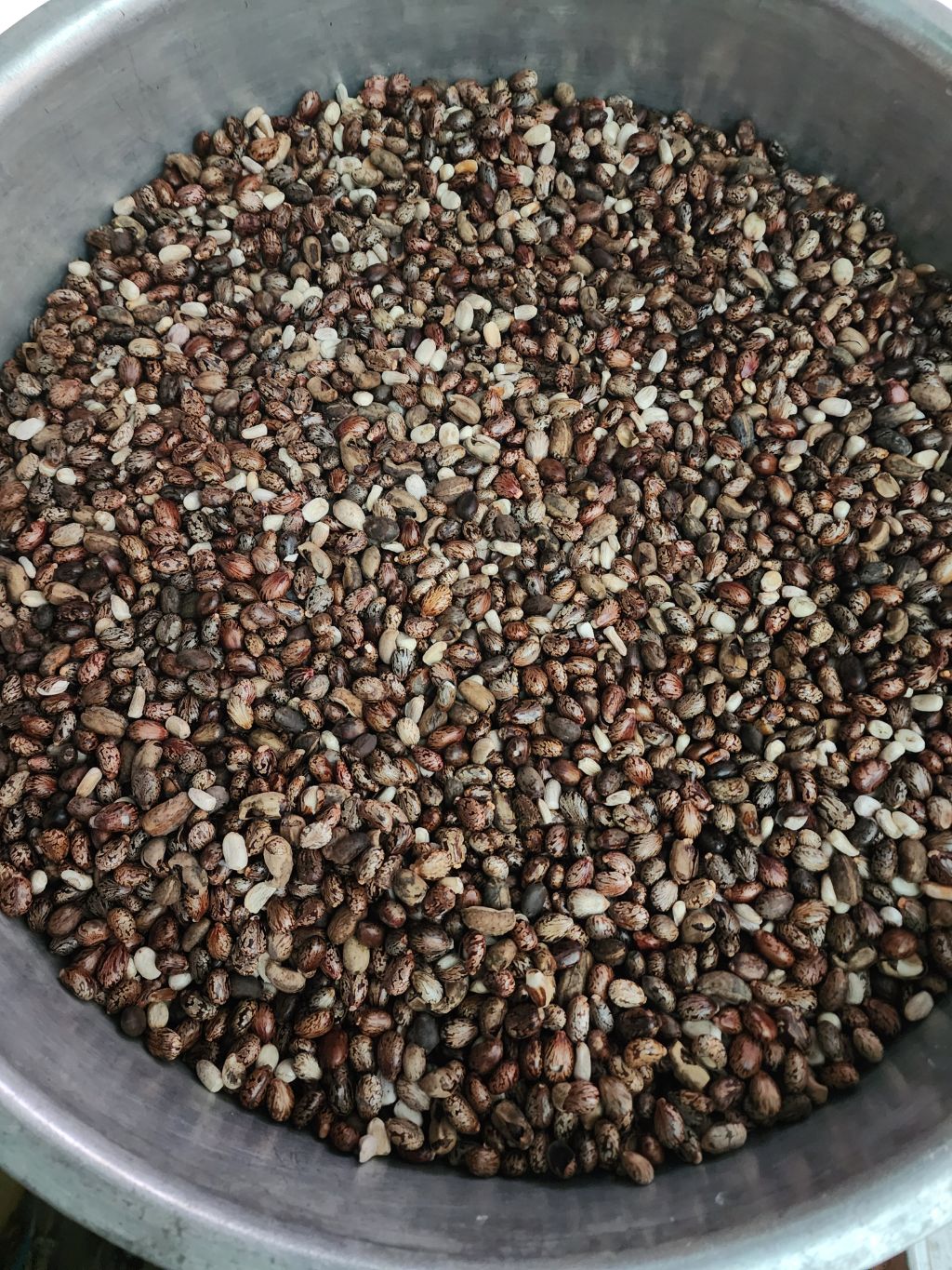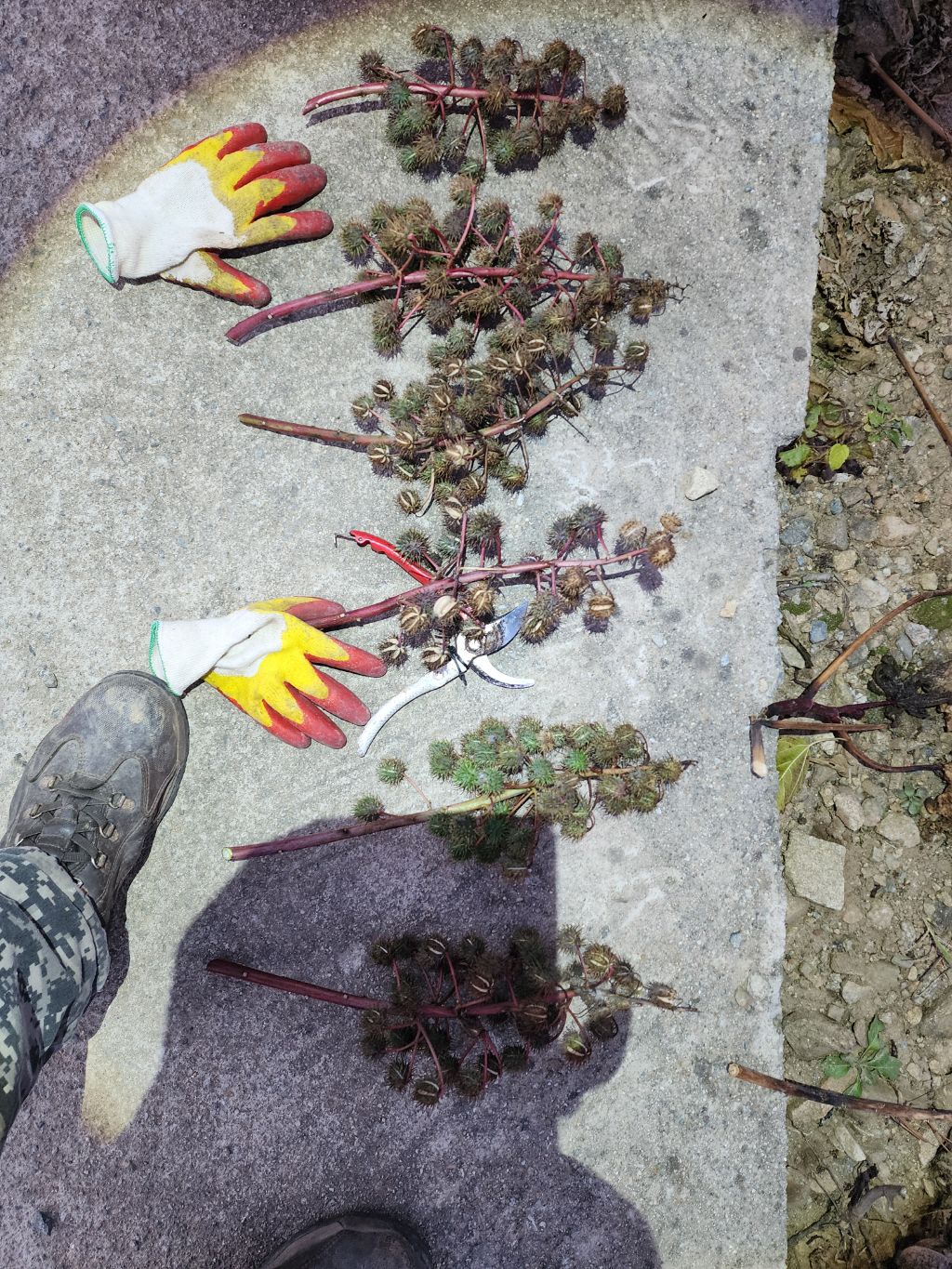 이렇게..벽돌로 원시적인 수작업 으로 아주까리 씨앗을 까야 합니다.