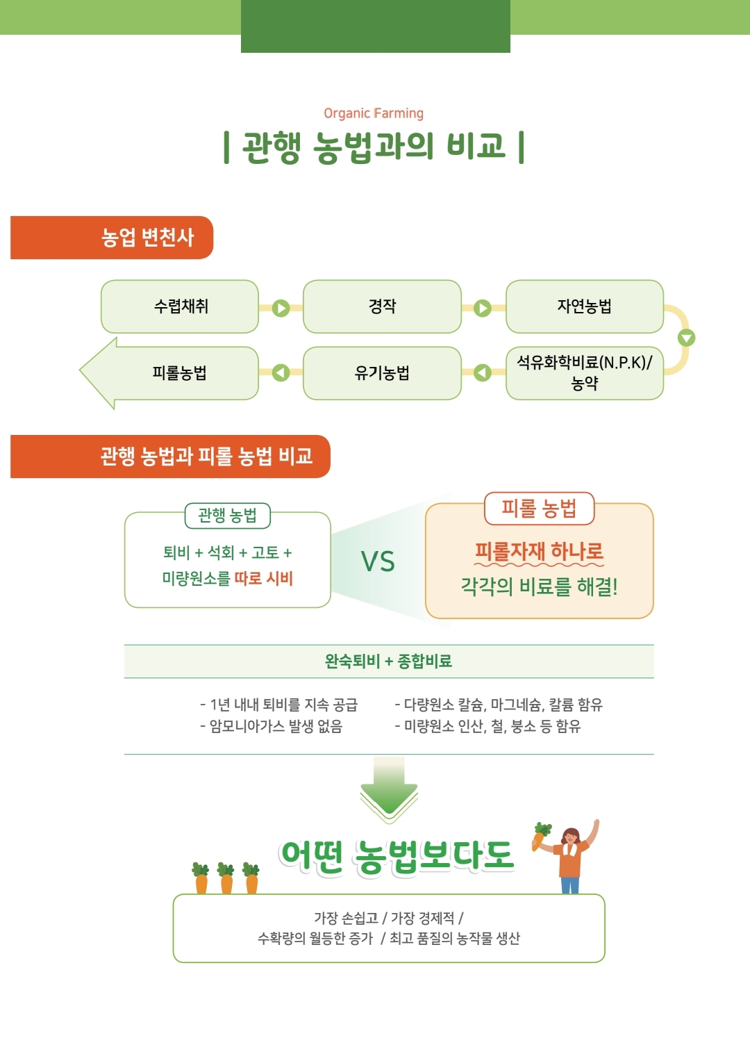 피롤비료를 사용하는 ‘맞춤형 피롤농법’은 지금까지 관행의 투입형 영농기술에 기초를 두고 개발한 농법이 아니라 그 기본 원리부터 완전히 다른 신개념 농법이다.
