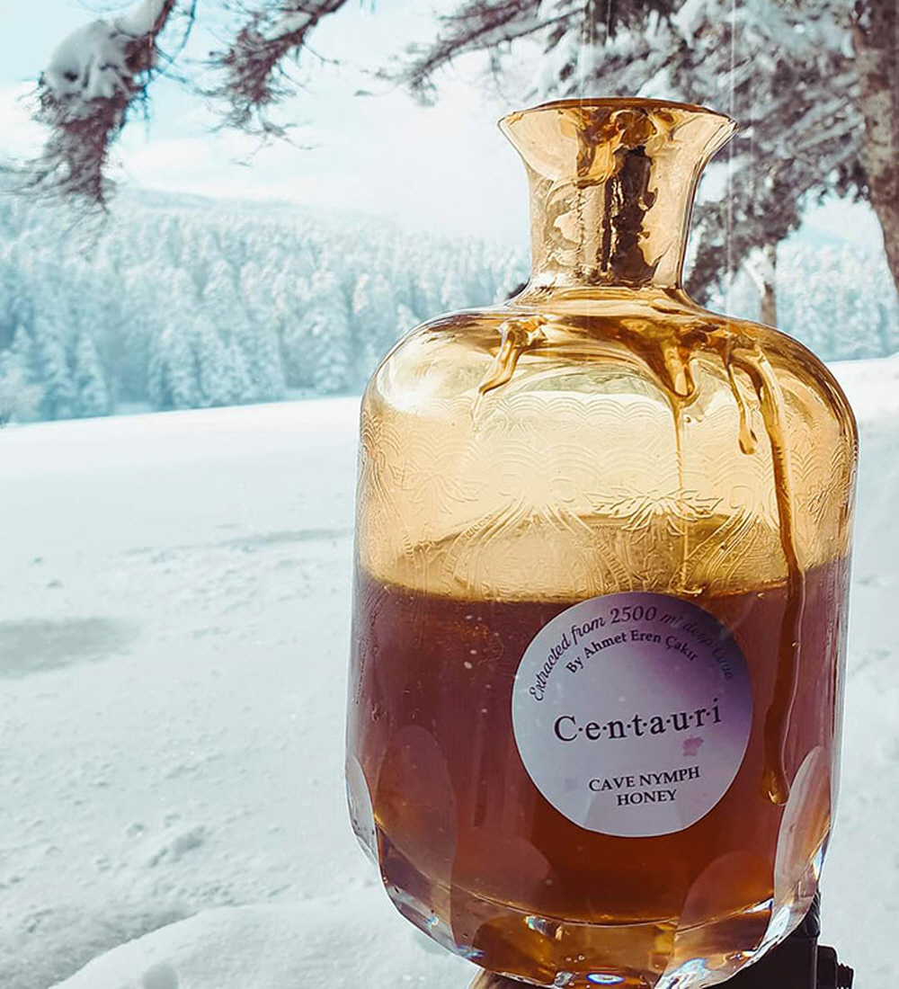 당신은 이것이 이 꿀이 수확되는 전형적인 상황이나 꿀벌이 사육되는 환경이 아님을 확신할 수 있습니다. 해발 2,500m 고도의 터키 흑해 지역 구름 위 언덕에서 이 특별한 꿀을 생산합니다. 꿀벌 벌통들은 추운 날씨와 높은 고도에 강한 흰줄벌(Lasioglossum lanarium)은 바로아 응애(varroa destructor)의 전염을 위해 접촉할수 없도록 인간 거주지 또는 다른 꿀벌 벌통에서 50km 떨어져 있습니다. 외부 기생 진드기는 꿀벌을 공격하고 먹이를 먹고 꿀벌 벌통에서만 번식할수 있으므로 이러한 진드기를 막는 것이 매우 중요합니다. 또한 다른 벌꿀 육종가와 달리 유기농이든 아니든 화학 물질을 사용하지 않고 바로아 진드기를 억제하기 위해 천연 식물만 사용합니다. 이는 꿀의 품질을 해칠수 있기 때문입니다. 다른 차이점으로는 다양한 질병과 싸우는데 도움이 되는 페놀, 플라보노이드 및 항산화 수치를 높이기 위해 꿀벌을 위해 심어지는 약초가 있습니다. 8월 말까지 수확을 마치는 낮은 고도의 다른 양봉가와 달리 높은 고도에서 11월 중순경 가을의 늦은 꽃가루를 수집하는 늦은 수확; 꿀벌에게 설탕시럽을 먹이지 마십시오. 꿀의 품질을 높이기 위해 비밀 공식도 사용되지만 가까운 가족조차도 이 보석을 알지 못하며 센타우리 꿀(Centauri Honey)이 엄격한 테스트를 받는지 확인하고 각 병은 고객이 제품을 받기 전에 분석 보고서를 위해 터키 과학 위원회로 곧장 향합니다.