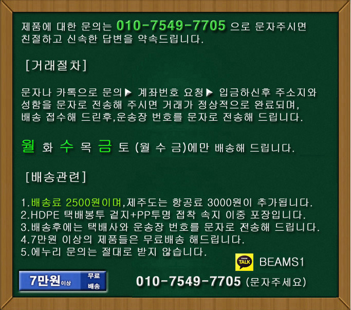 택배거래:배송료2500원이며,7만원부터는 묶음포함 무료배송 해드립니다.