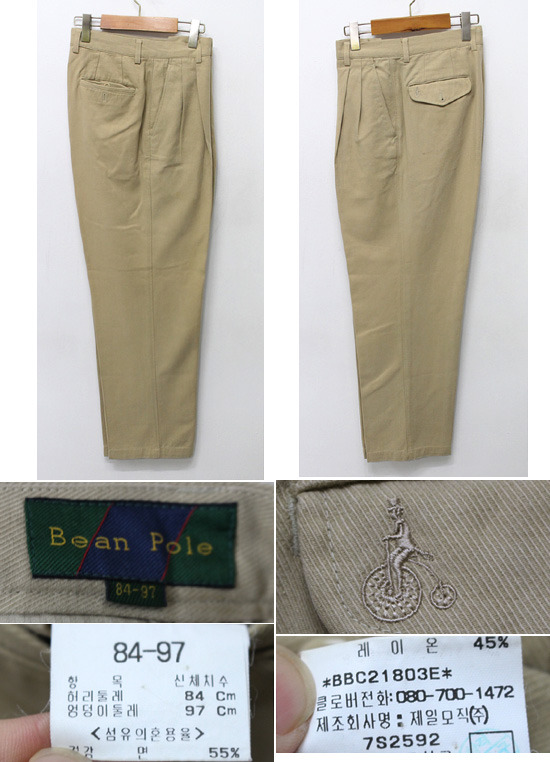 2턱에 100% 면소재에 치노면바지입니다. 상태 매우 좋고 베이지색상 이쁘네요~