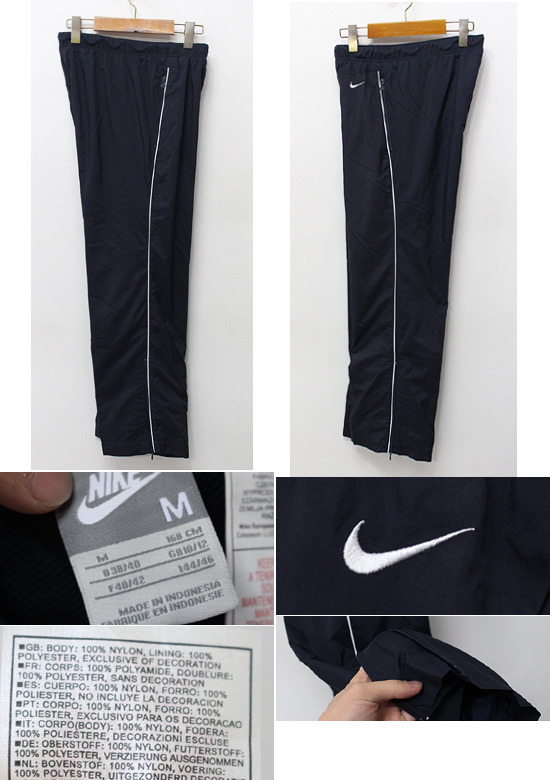 100% 나일론 소재로 방수 방풍 재질의 기능성 트레이닝바지입니다. 밑단 옆지퍼