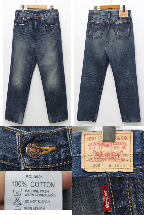 506 루즈핏 일자라인의 빈티지 워싱 진청바지입니다. 빈티지한 워싱이 너무