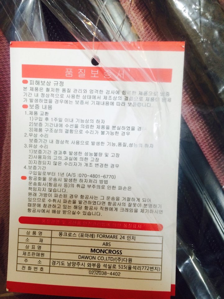 3. 물품명(기타부속품): 2016 몽크로스 포마레 확장형 24인치 캐리어