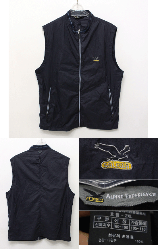 나일론 기능성 소재 등산 집업 조끼입니다. 뒷 목 중앙 통풍 지퍼 있는