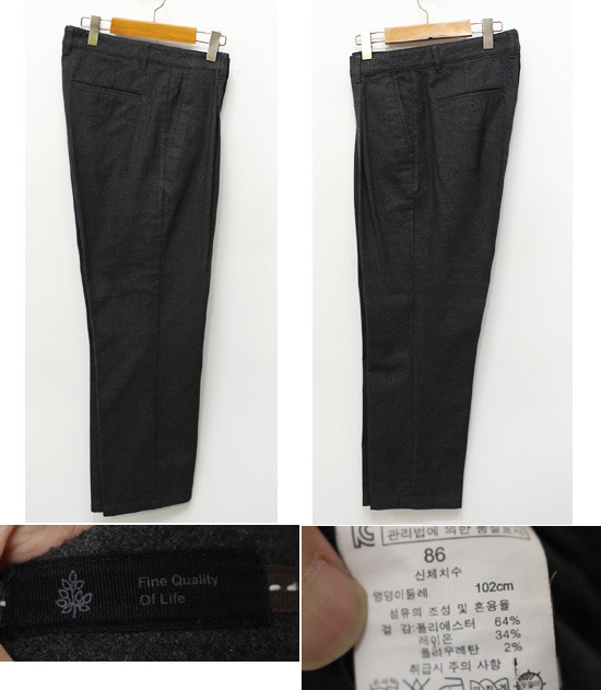 100% 울소재에 캐시미어10% 함유된 2턱의 고가의 정장바지입니다.