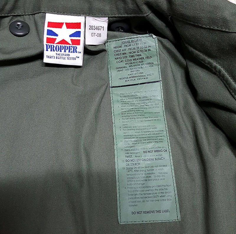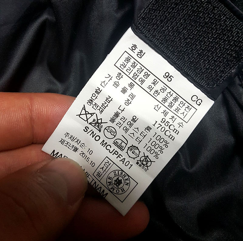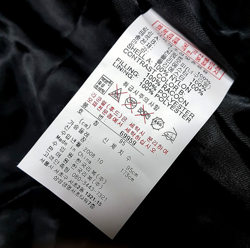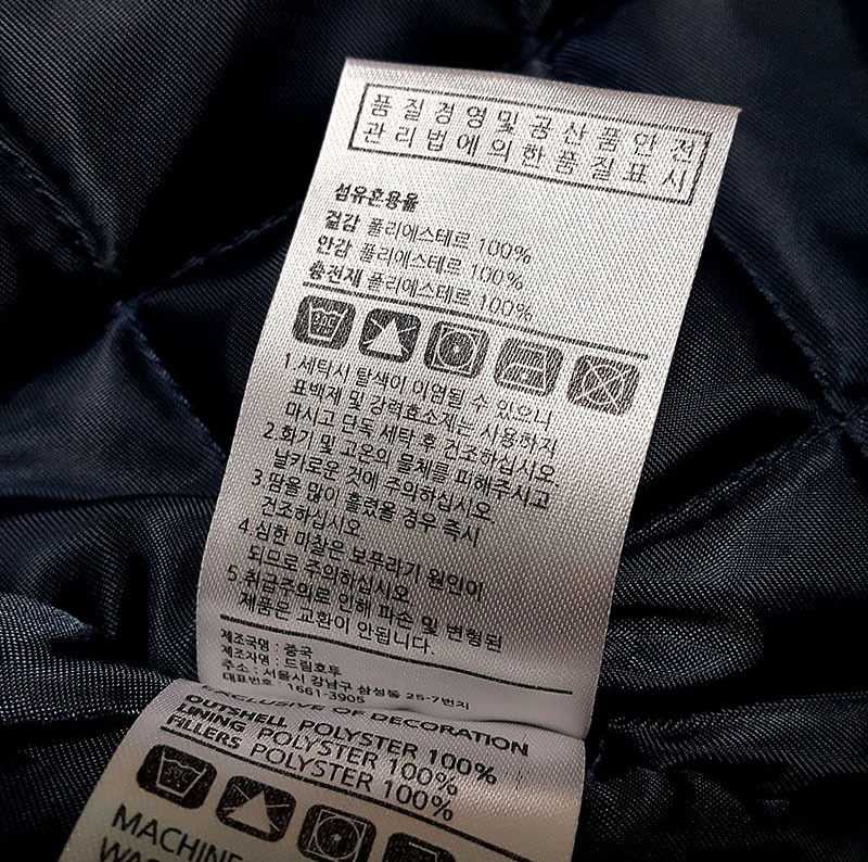 겉감(면50% 나일론50%) 안감(면35% 폴리에스터65%)