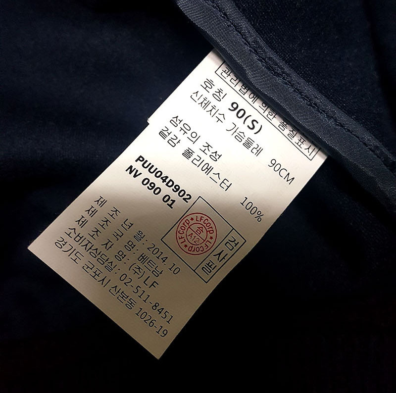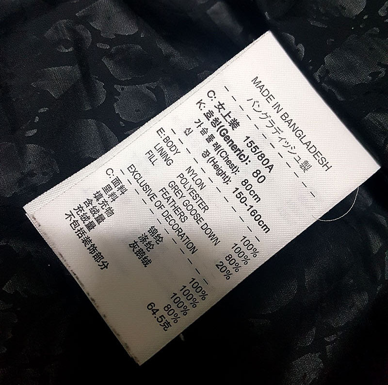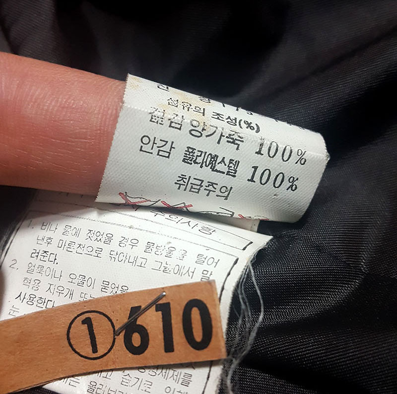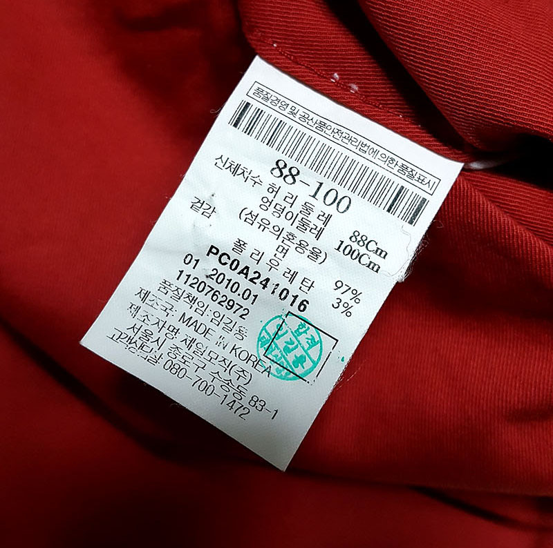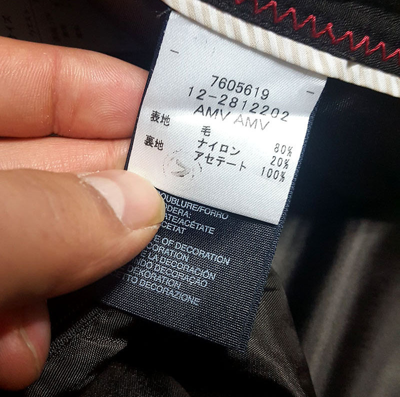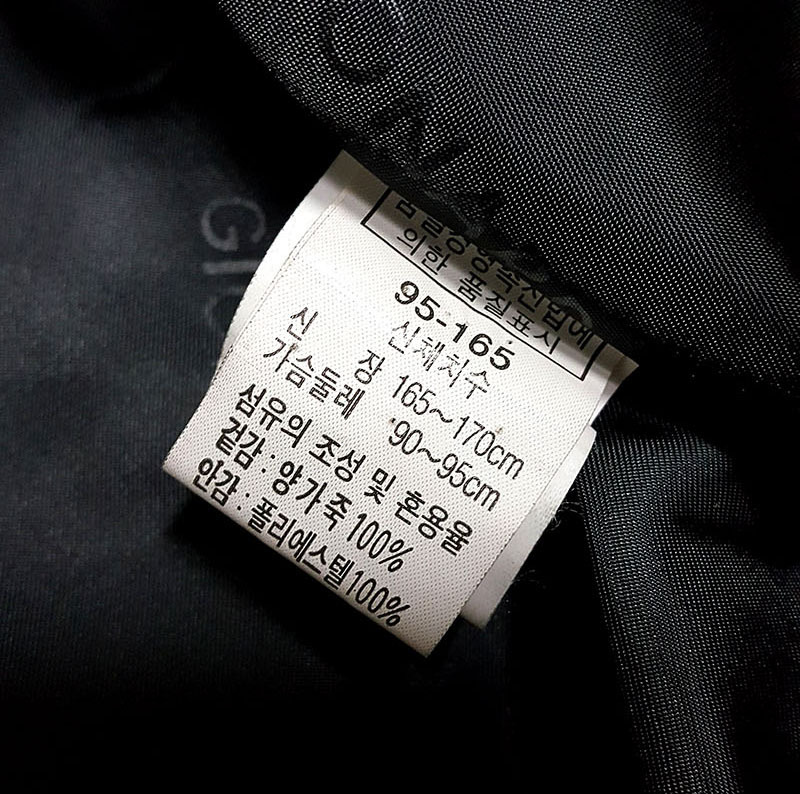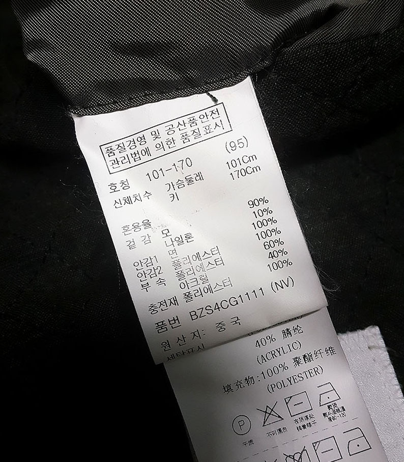 겉감(모직80% 나일론20%) 안감(아세테이트100%)