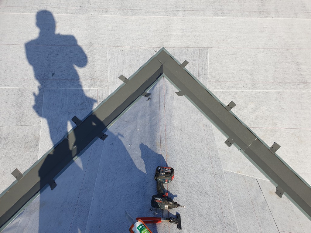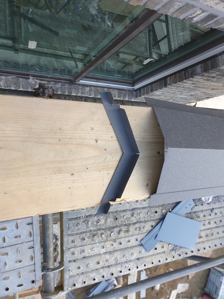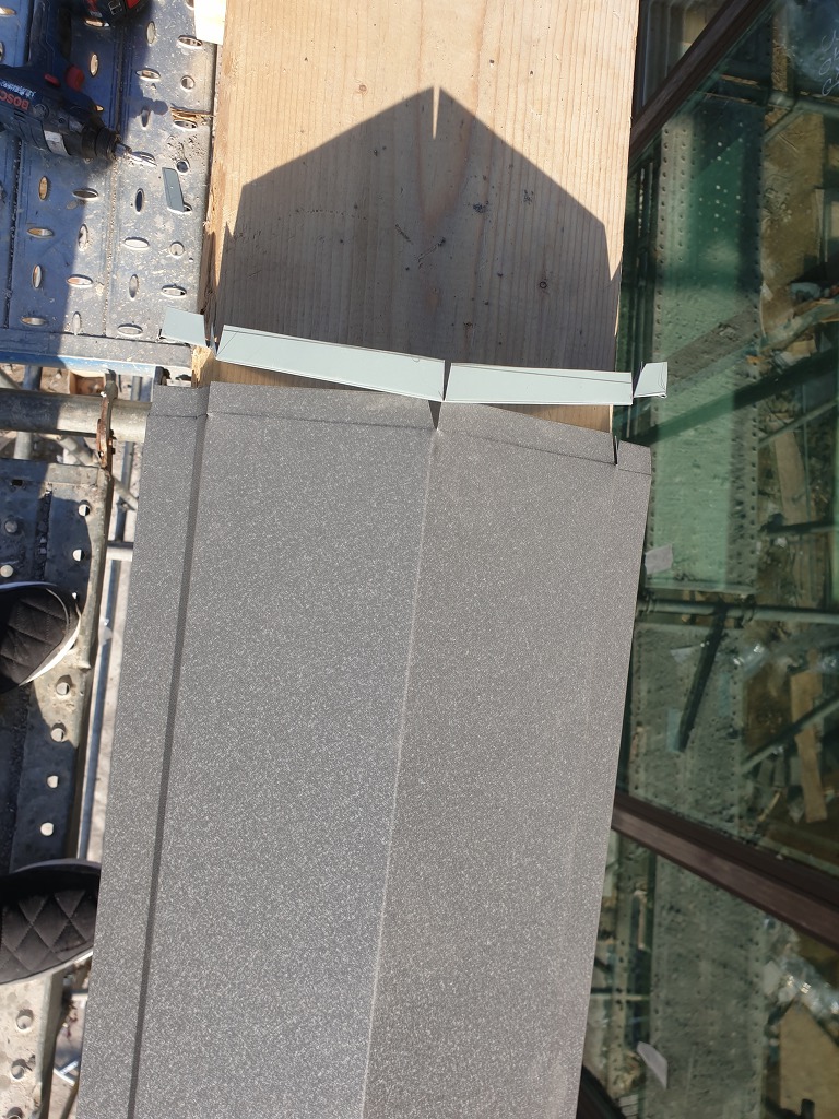 징크 돌출 코의 꺾임방향이 빗물에 거슬리지 않도록 아래로 방향을 잡아 징크시공을 해야 바른 방법이며, 사선시공이나 박공부분도 이원칙을 지켜주어야 합니다.