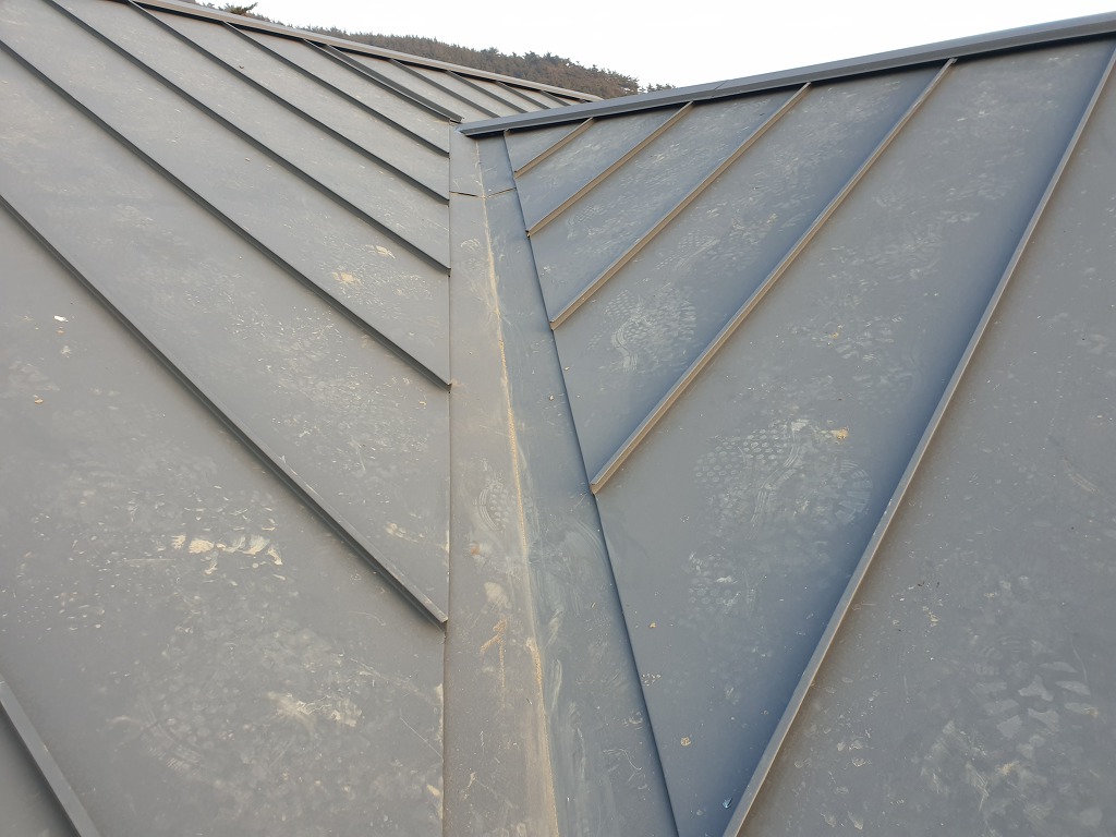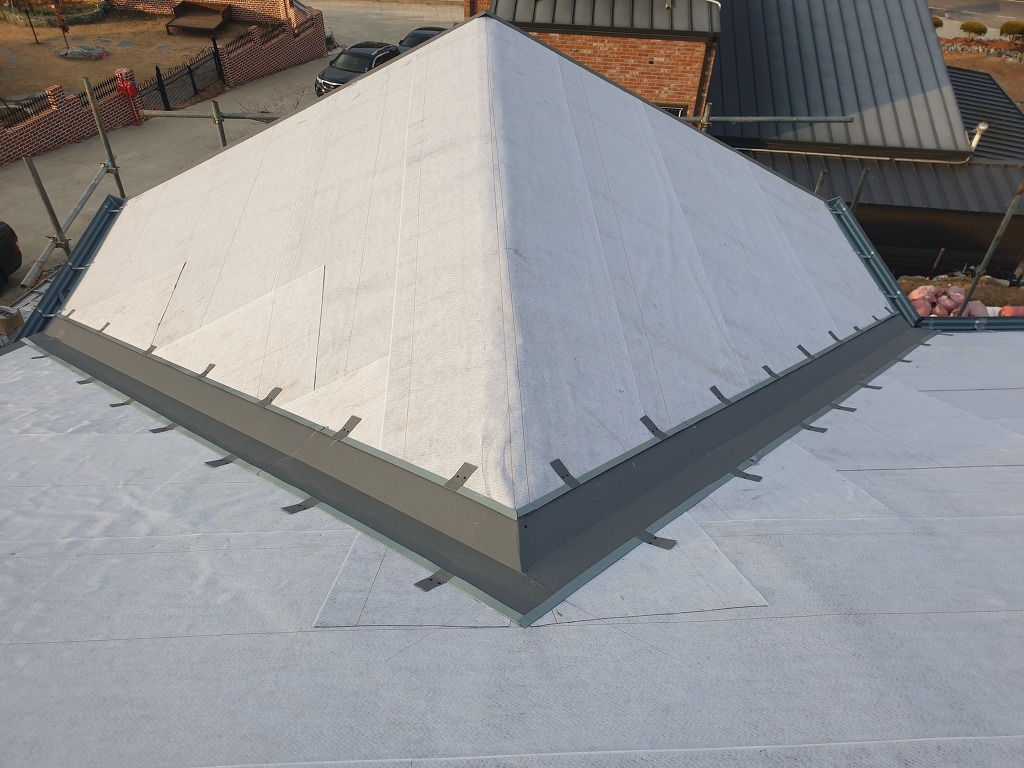 용마루 끝단은 마감후에 보이는 부분이기 때문에 빗물처리는 물론이고 미관상 디자인도 고려해서 시공해야 합니다.
