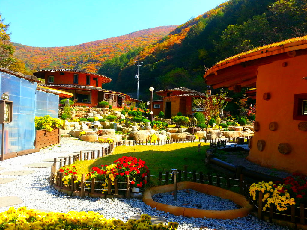* 황토흙집 펜션 ** 산과 산사이** 입니다