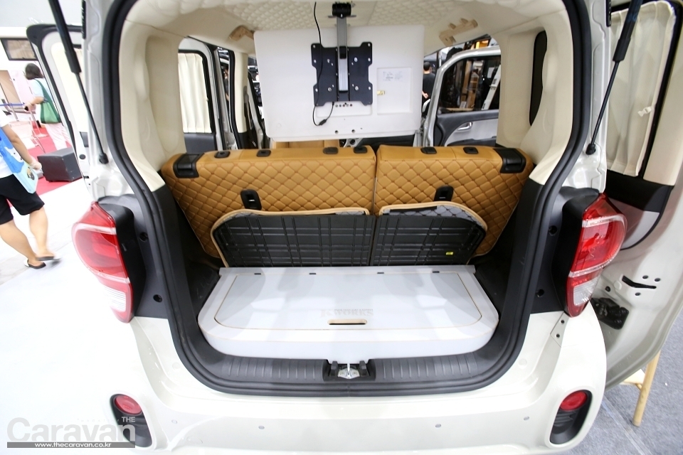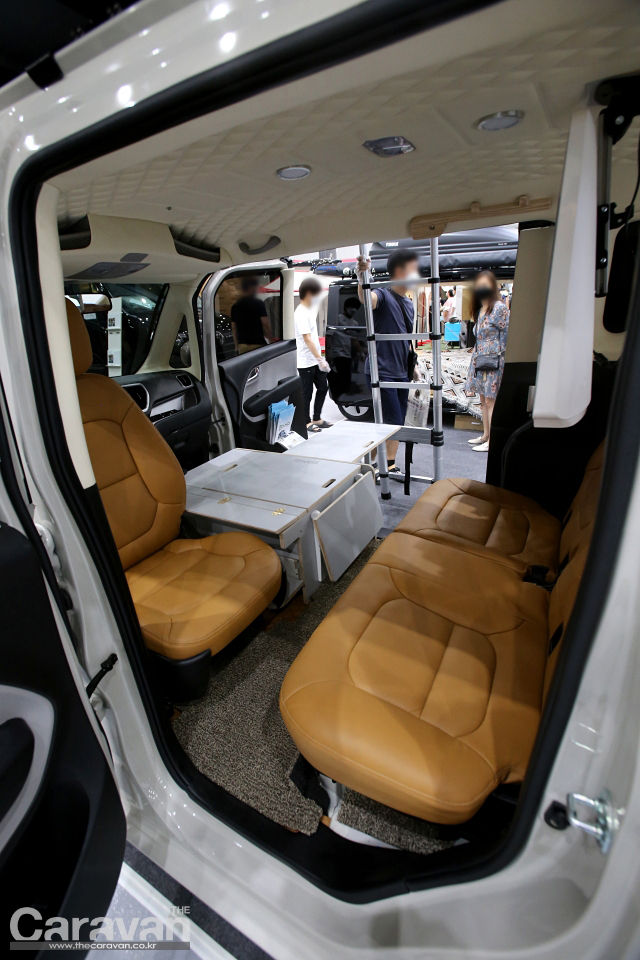 뒷좌석은 운행 시엔 좌석으로 정차엔 평탄화하여 침상구조로 변환이 가능하며, 좌석 뒤로 짐을 수납할 수 있는 캠핑박스가 들어가 있다. 기존 2인승보다는 줄어든 적재 공간이지만 사용에는 큰 무리가 없다. TV와 스크린 등 멀티미디어를 후면에 배치해 느긋하게 휴식을 즐길 수 있고, 후면을 완전히 개방하면 쾌적하고 시원하게 자연을 즐길 수 있다.