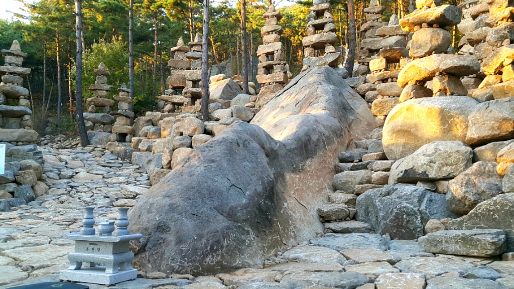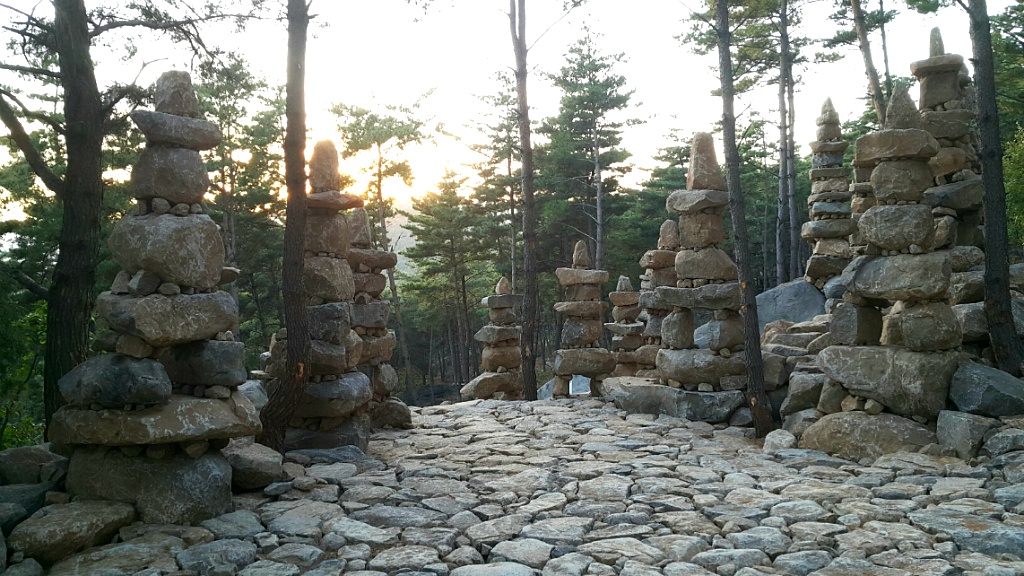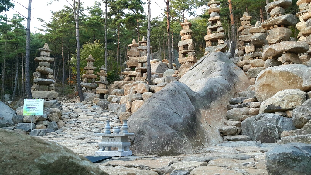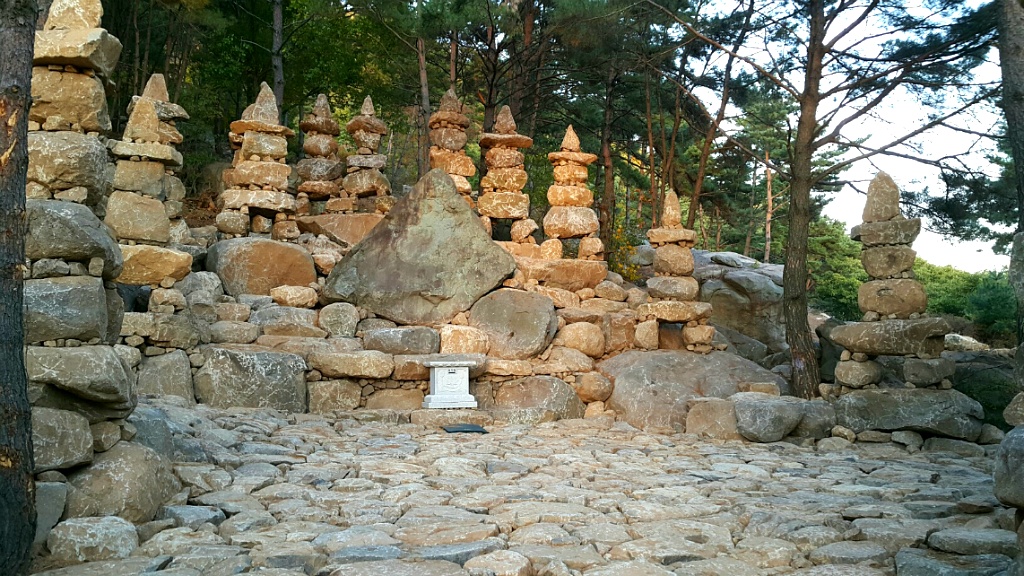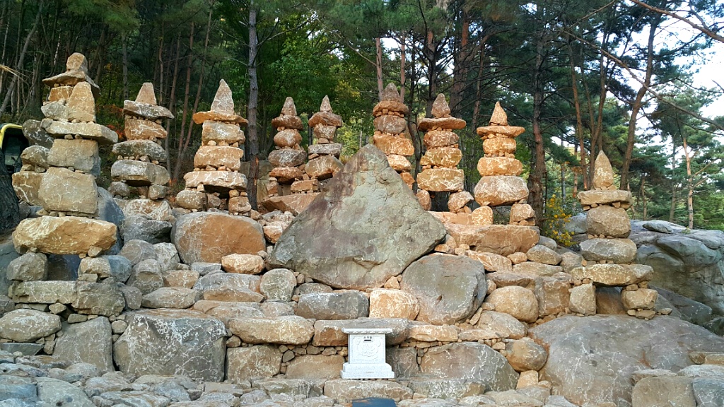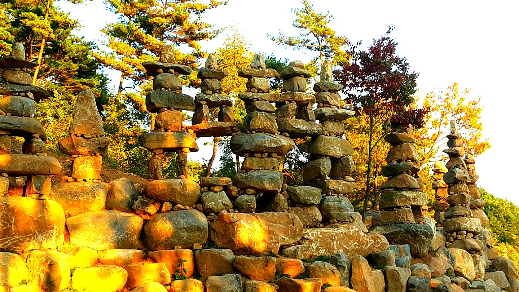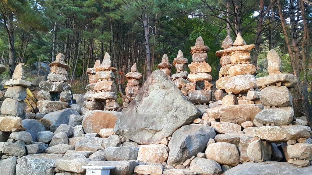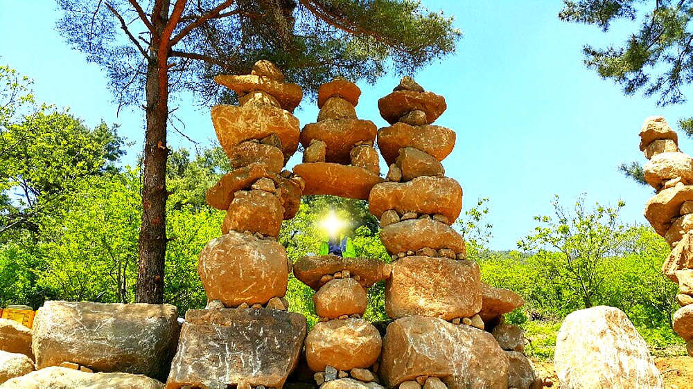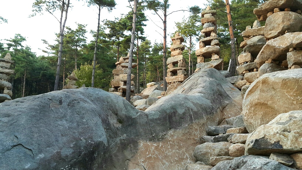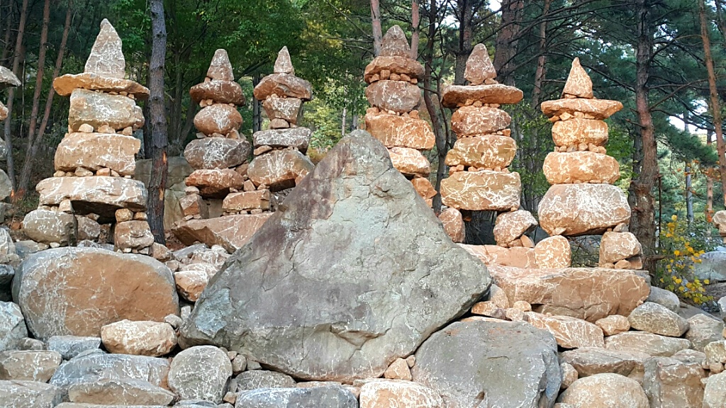 돌탑과 돌탑사이에 또 돌탑을 쌓아서