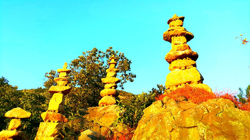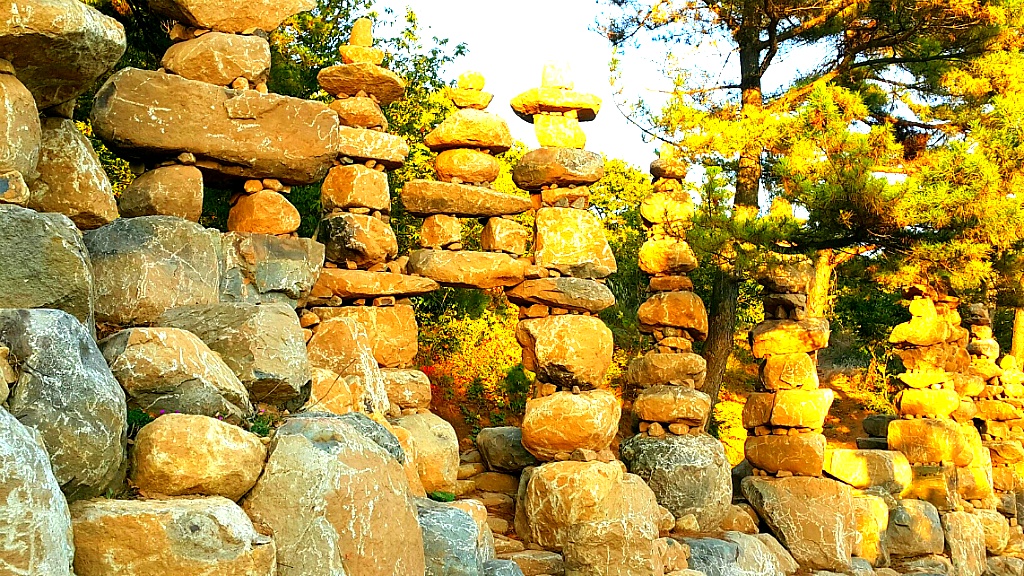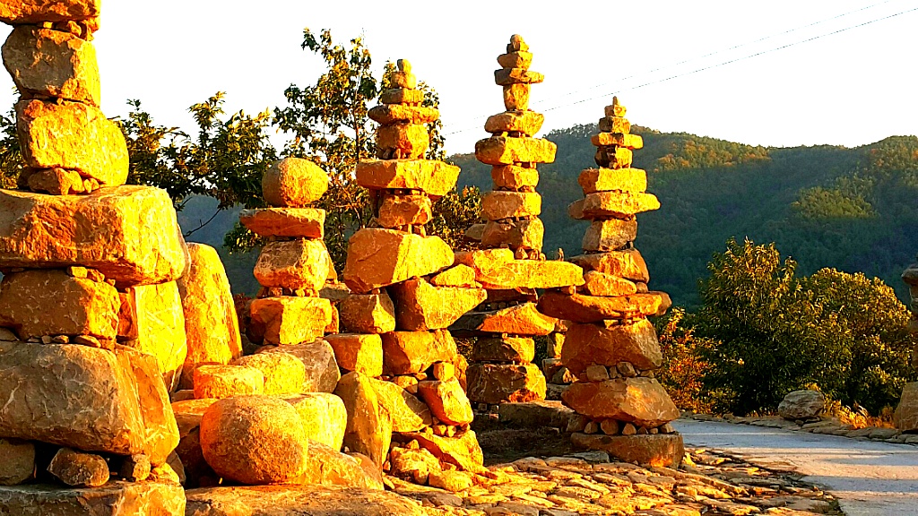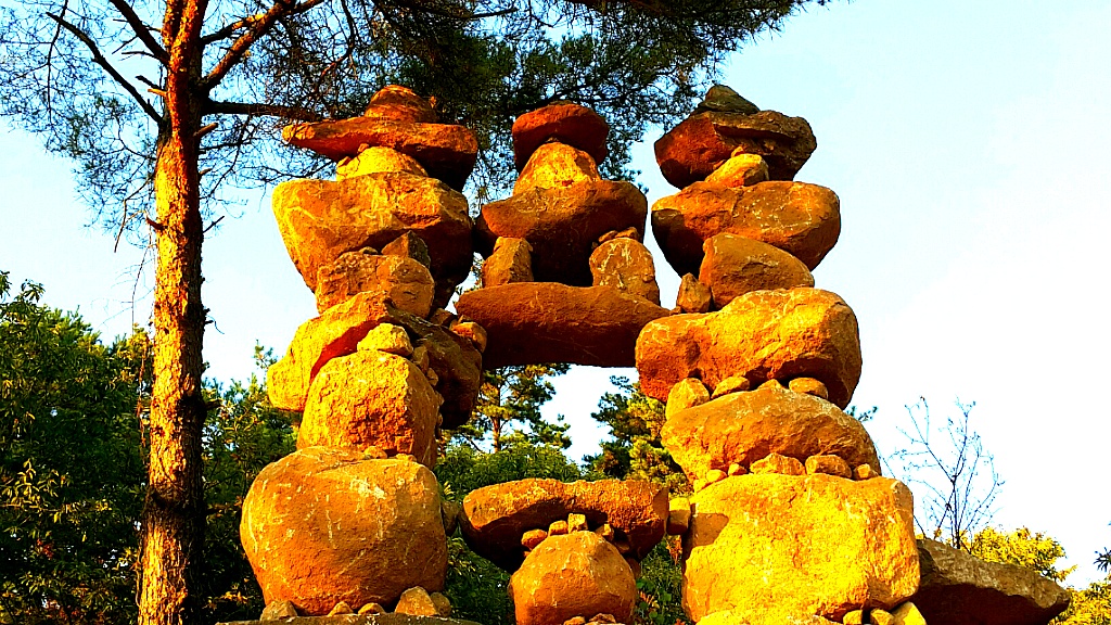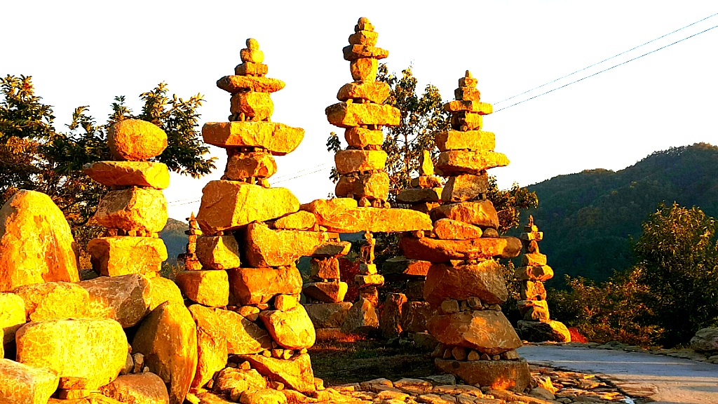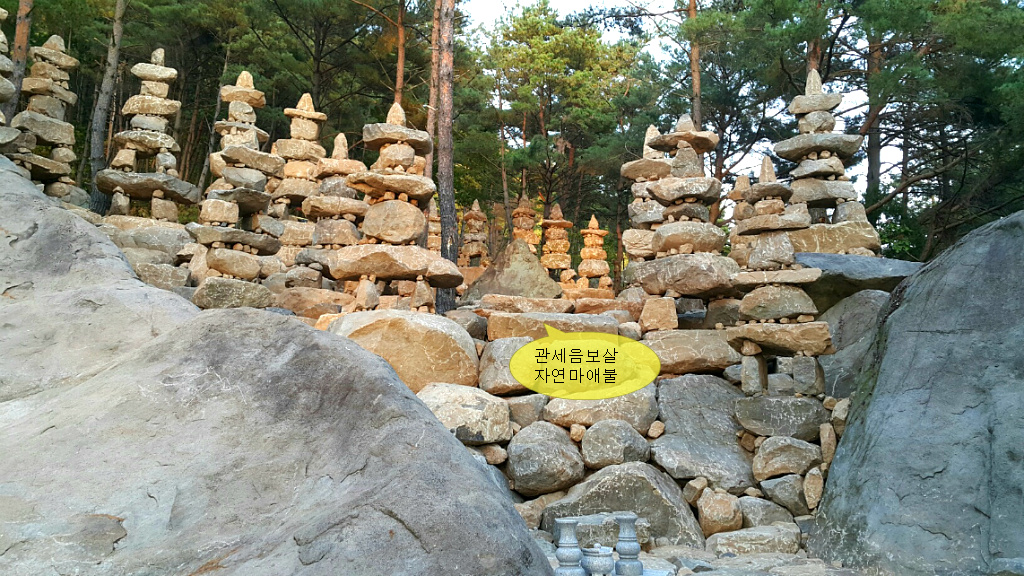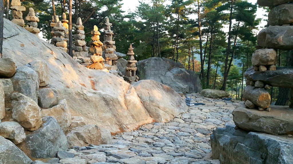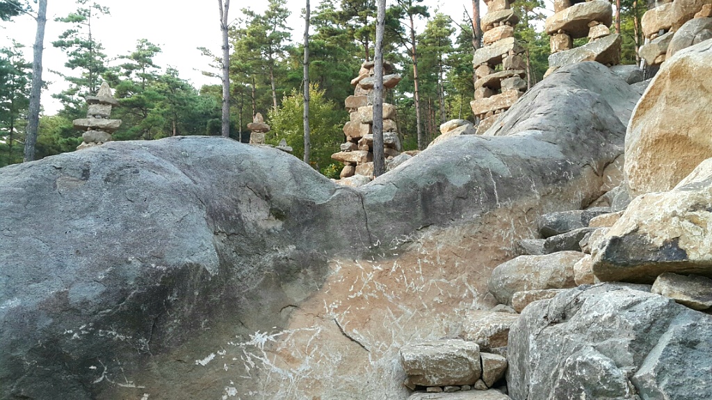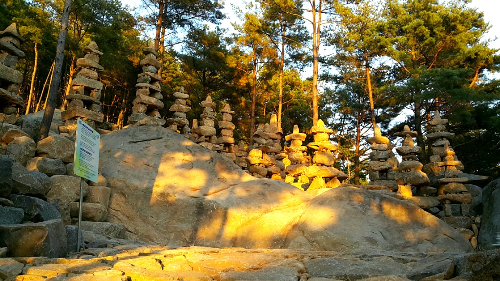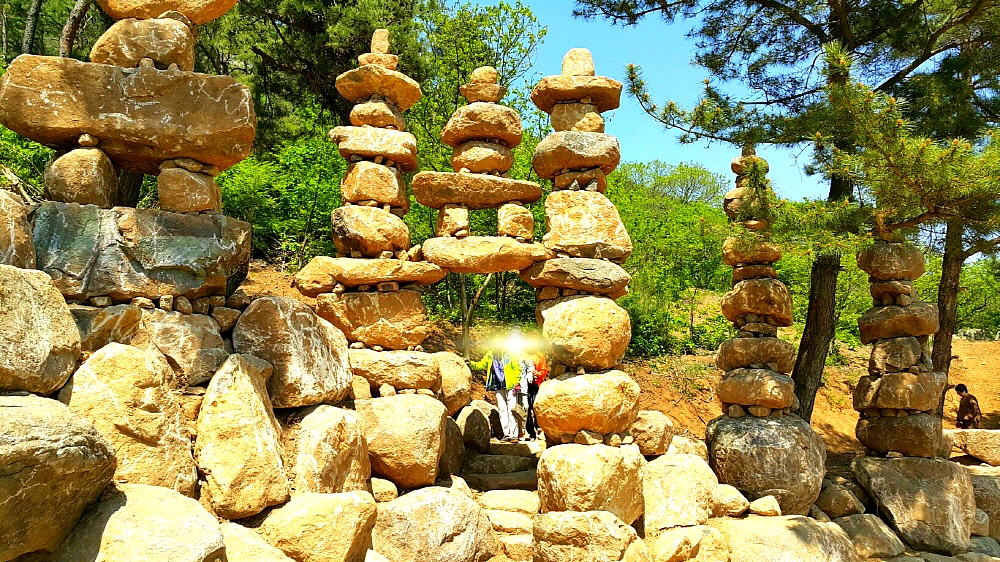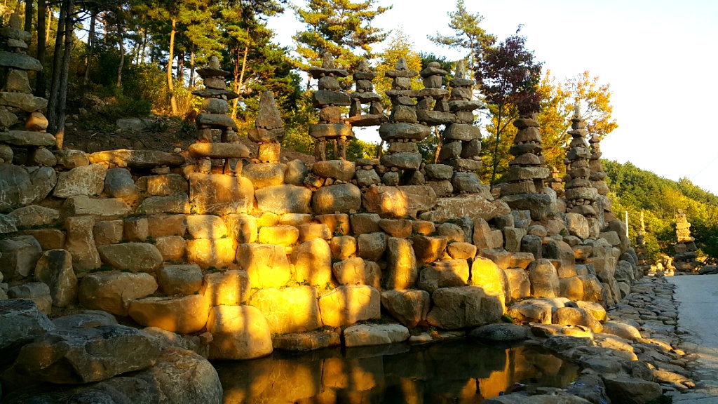 돌탑과 돌탑사이에 또 돌탑을 쌓아서