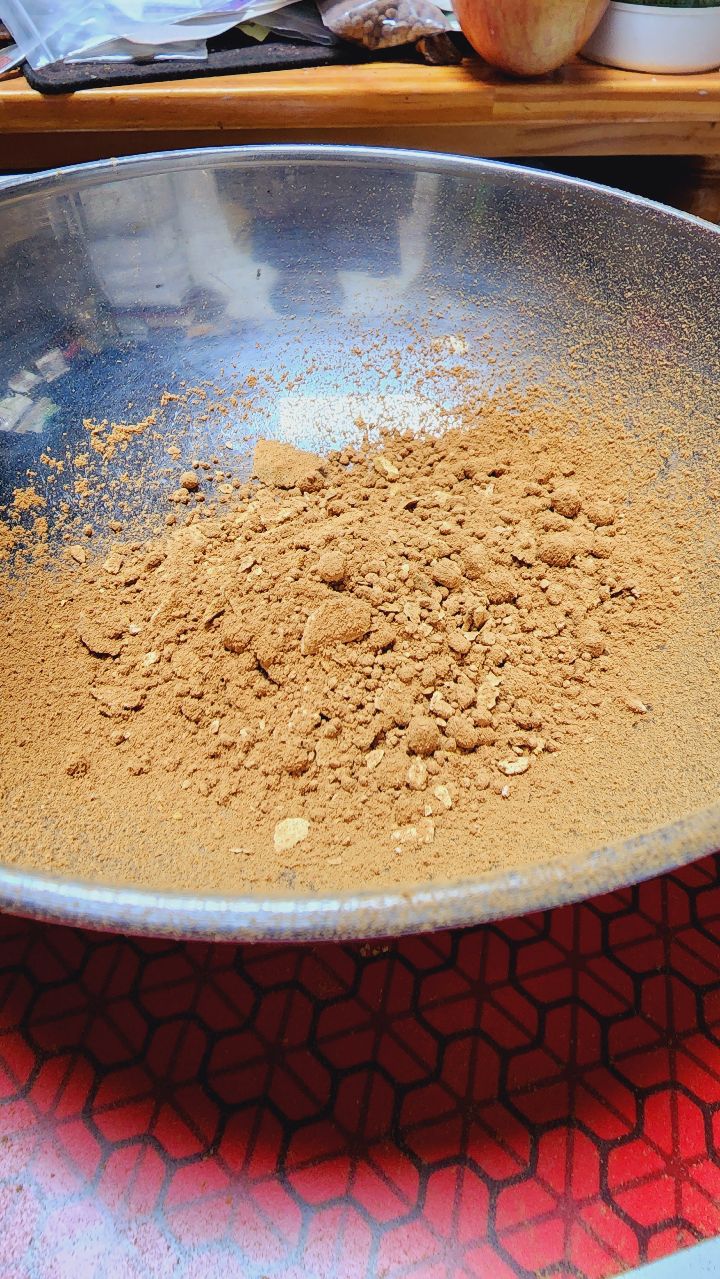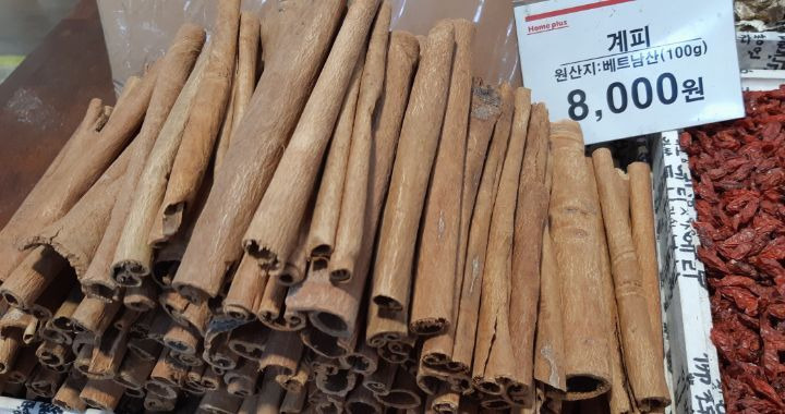 * 계피속에는 먼지나 곰팡이 등이물질이 들어 있어 계피속을 칼로 쪼개서이물질 확인하고 세척해서 건조후 제분하고