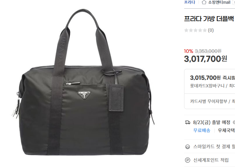 제품명 : 프라다 원단 소가죽 콤비 여행용 가방 (177)