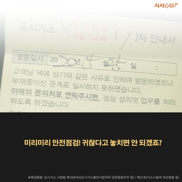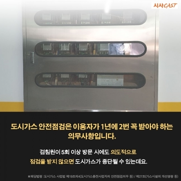 도시가스 안전점검, 안 받으면 이런 피해가? 작성자귀촌여행|작성시간21.08.06|조회수466 목록 댓글 1 글자크기 작게가 글자크기 크게가 출처 (시사캐스트, SISACAST= 이지나 기자) 다음검색 현재 게시글 추가 기능 열기 북마크 공유하기 신고 센터로 신고 댓글 댓글 1 댓글쓰기 답글쓰기 댓글 리스트 작성자남천 | 작성시간 21.08.11 감사합니다 😄😀 댓글 전체보기