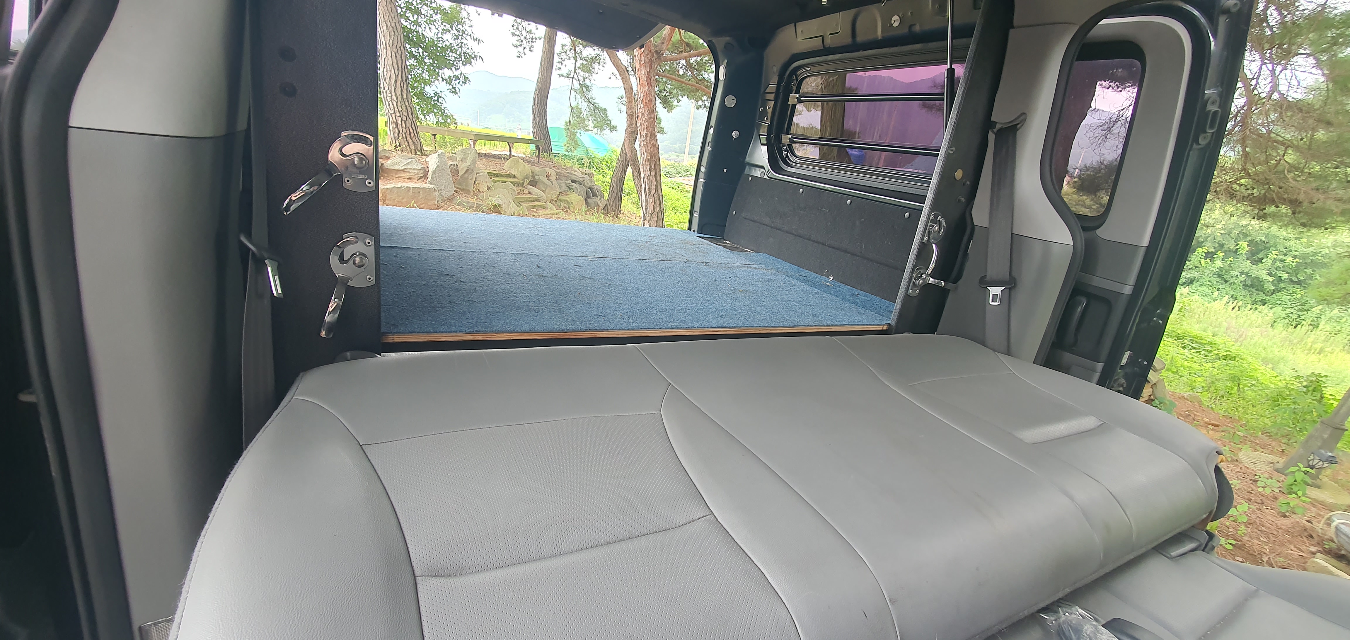 조립식격벽개조하는데 170만원 시동키 애플티븓장착하는데 100만원 정도들여서 차박할 수 있도록 꾸몄습니다