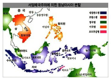 아시아에서는 영국이 인도를 비롯하여 네팔, 싱가포르, 말레이시아, 보르네오 일부 등을 점령하고, 자바, 몰라카즈 제도, 수마트라 등은 네덜란드가 차지하고,