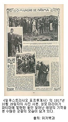 ※ 맨 마지막의 문구는 '일곱 개 언덕의 도읍(로마)은 파괴되고 무서운 재판관이 사람들을 재판하리라.'이다. "오오, 얼마나 무서운 광경인가. 나 자신이 아니 나의 후계자인지도 모르지만, 로마법왕의 자리에서 내려와 바티칸을 떠날 때에, 사제들의 시체를 밟아 넘으며 걷지 않으면 안되었다!" ※ 파티마 제 3의 비밀 이때, 성모 마리아는 매월 13일에 여섯 번이나 계속하여 출현하였는데, 특히 1917년 10월 13일 수천명의 군중들 앞에 모습을 보였다. 제 1예언과 제 2예언은 1960년까지 발표되지 않았었다.