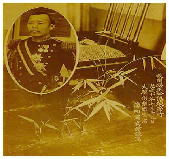 1906년 7월 5일자 대한 매일신보 는 이렇게 기록하고 있다. `공의 집에 푸른 대나무가 자라났다. 생시에 입고 있었던 옷을 걸어두었던 협방 아래서 푸른 대나무가 홀연히 자라난 것이라 한다. 이 대나무는 선죽과 같은 것이니 기이하다`신문 보도대로 민영환이 순국한 지 8개월 후,피묻은 옷을 간직했던 방에서 청죽이 솟아올랐다. 또하나의 기적은, 죽은 자리에서 피어난 바로 그 대나무의 45개의 입사귀는 순국할 때의 나이와 같은 숫자여서 더욱 신기하게 여겨졌다.