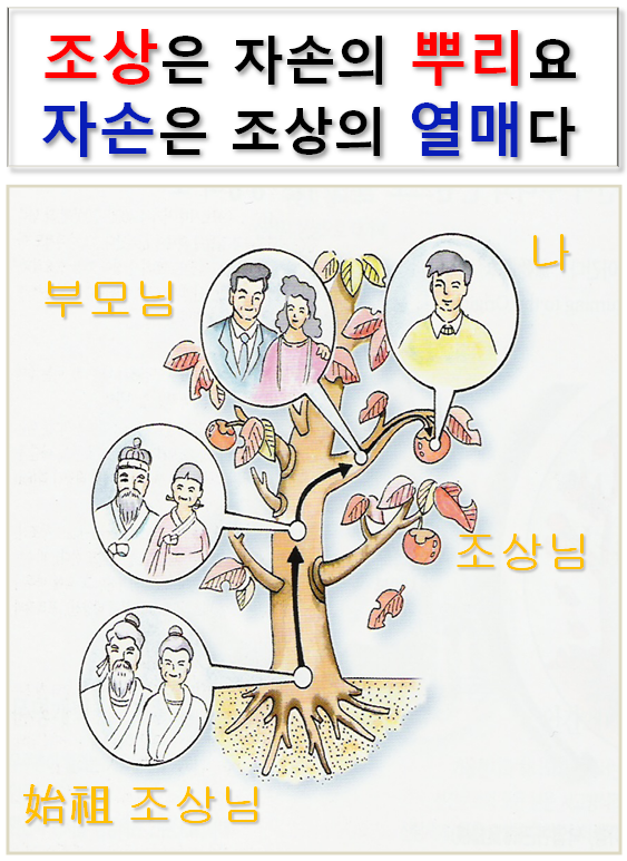 조상들이 100대손 200대손 흘러 내려왔지만, 그 자손이 하나라도 살아남아야 그 조상신들도 산다. 마치 천 년 고목나무에 수냉이(순) 하나만 있으면 그것이 숨구멍이 되어 고목이 살 수 있다, 그것이 떨어지면 고목나무도 죽고 만다. 그렇듯이 눈 먼 안팎 곱추라도 하나 자손이 살면 그 조상이 살고, 자손이 죽으면 그 조상도 다 죽고 만다. " 자기 조상들이 세상살이를 착하게 살다 간 자손들은 역사적인 신명들의 도움을 받아 살아남을 수가 있고, 조상들이 세상살이를 불량하게 살다 간 자손들은 역사적인 뭇 신명들의 보복을 받아서 살아남기가 어렵게 된다. "우리가 선천 봄여름 세상에 태어났더라면 이 세상이 둥글어가는 하늘땅의 이치를 몰라도 잘 살 수가 있지만 이번에는 선천여름에서" 후천 가을로 바꿔지는 개벽을 하는 때가 되어서 천지이법을 모르면 살 수가 없다. "조상도, 자손이 끊어지니 헛 세상을 왔다 간 것이고, 자손도 혈통이 끊어지니 여러 천 년 조상들 까지 자멸(自滅)되고 마는 것이다. 부모의 재산을 받으면 그걸 유산(遺産)이라고 한다. 그 유 자를 끼칠 ‘유(遺)’라고 하는데, 끼친다는 것은 다시 얘기하면 물려받고 물려준다는 뜻이다.