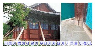 ※ 상제님께서 기둥을 잡아당기신후로 몇차례 보수공사를거쳤으나 건물이 바로잡히지 않아 최근 대대적으로 보수하였다. 사진을 보면 기둥이 지춧돌 중심에서 크게 벗어나 있음을 알수있다. 보릿고개 해소에 기여한 계화도 간척사업