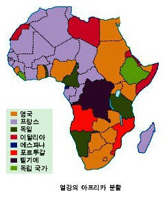 아프리카에서 영국은 이집트를 비롯하여 케냐,우간다, 소말리아 등을 차지하고, 알제리, 튀니지,모로코 등은 프랑스가 점령하고 그 외 지역도 독일과 이탈라아 등의 제국주의가 나눠먹었다.