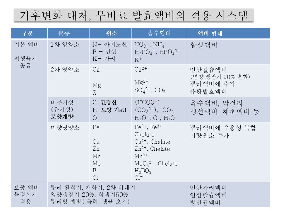 위와 같이 기초원소 다량원소와 미량원소 16원소를 발효를 통하여 수용성 이온화물질로 전환해서 바로 흡수하도록 해여 합니다.