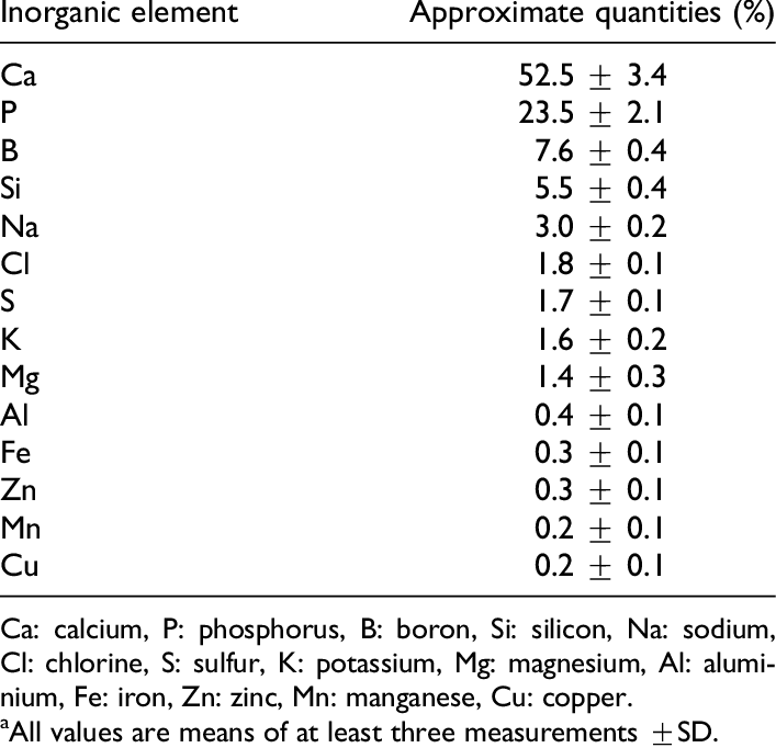 Inorganic element content of bone powder 골분의 무기원소 함량(%)