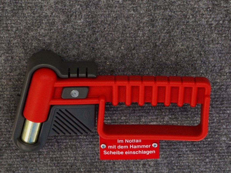 이때는 비상용 망치를 이용해 유리창을 파손하거나