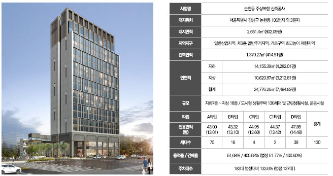 지하7층~지상18층의 고급 주거 (도시형 생활주택) 130세대 공급