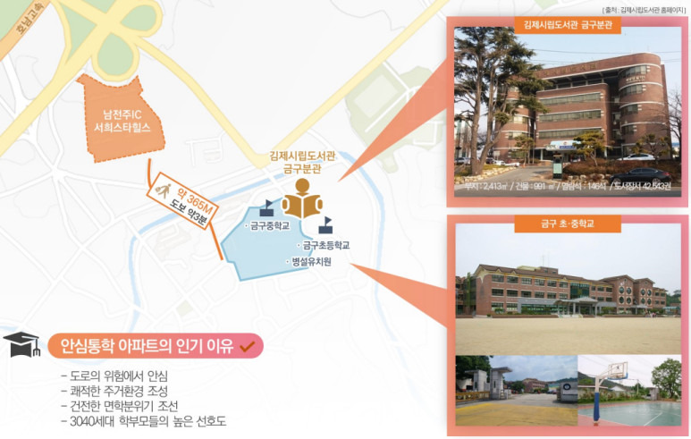 500m내 금구초등학교, 금구중학교, 동김제농협 로컬푸드 직매장 등 위치
